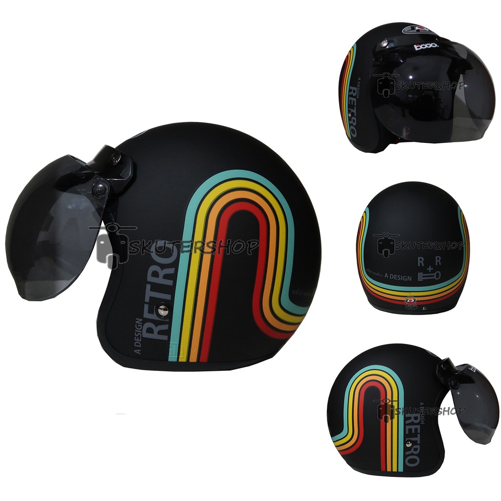 Alasan kenapa harus beli Skutershop Helm Bogo JPN Retro Klasik A Design Retro Rainbow Pelangi Hitam Doff + Kaca Bogo sekarang