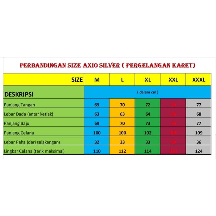 Produk ini memiliki 5 Variasi ukuran yaitu : M,L,XL,2XL,3XL,