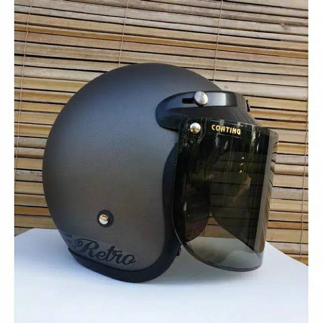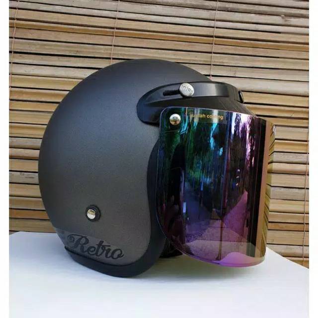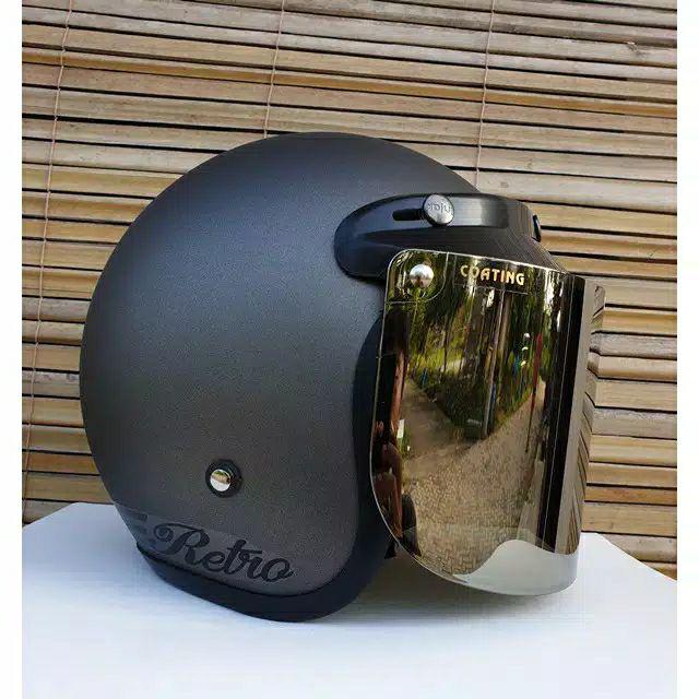 HELM BOGO DEWASA SNI PRIA WANITA RETRO FULL LEHER HITAM GLOSSY