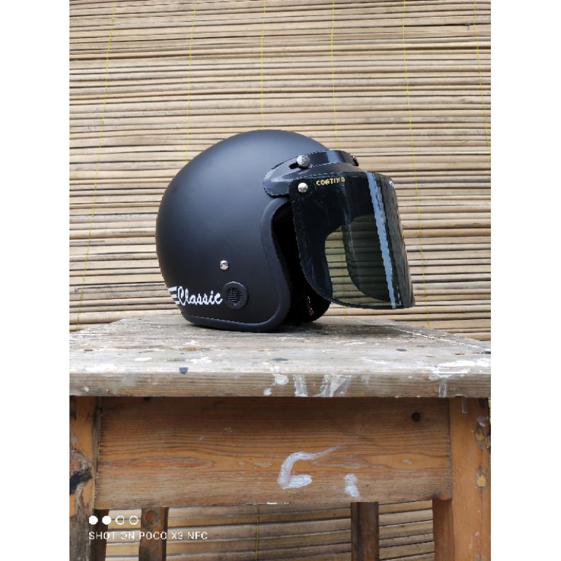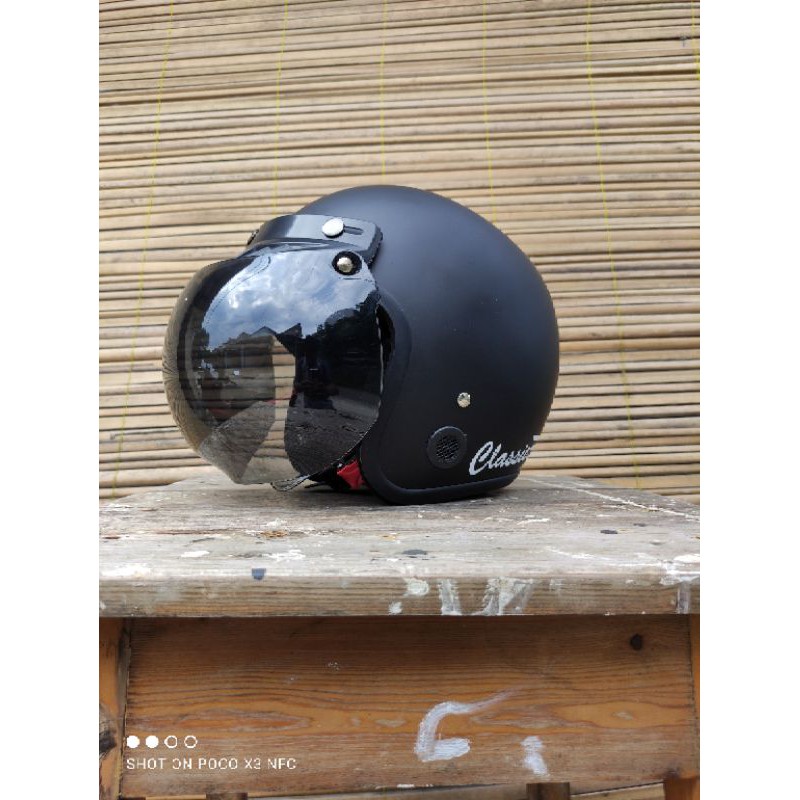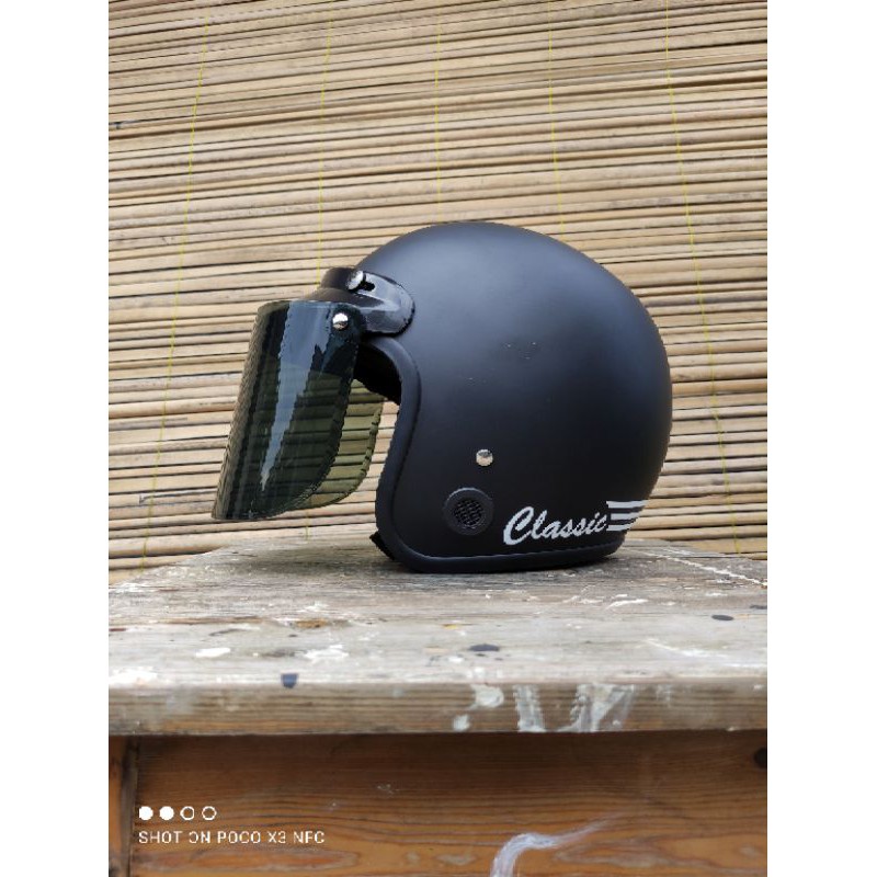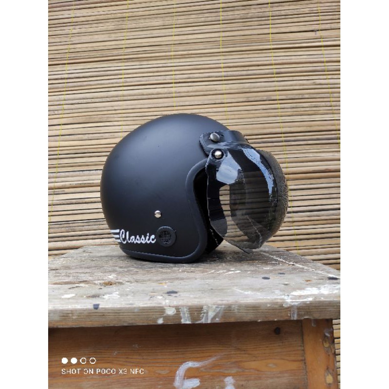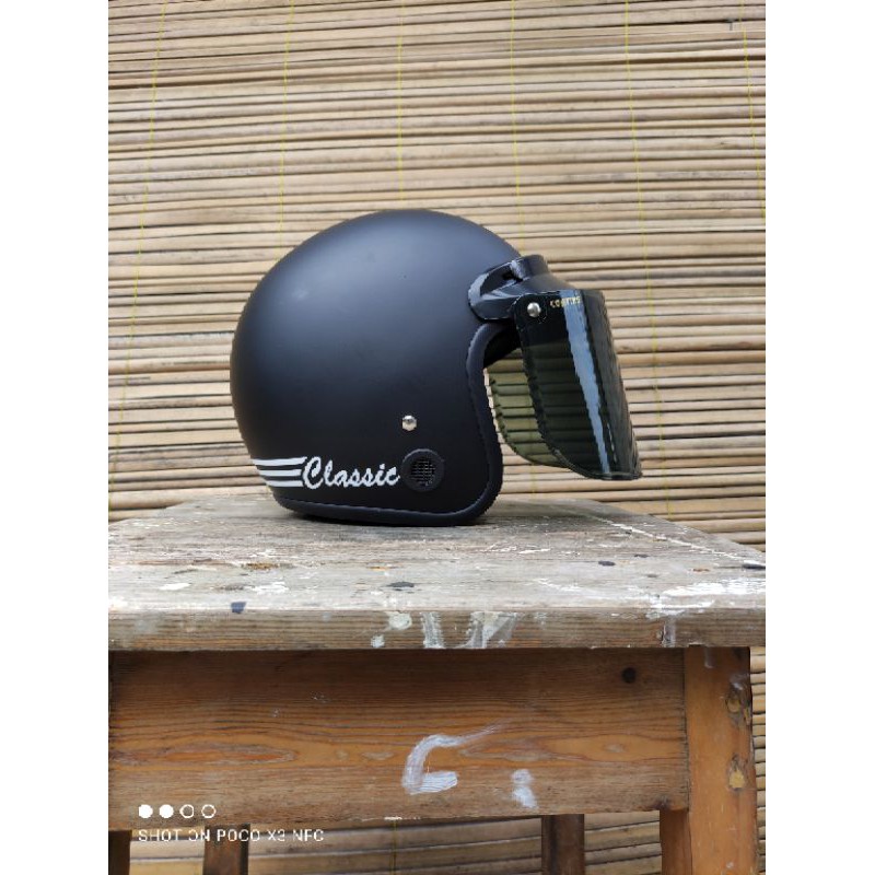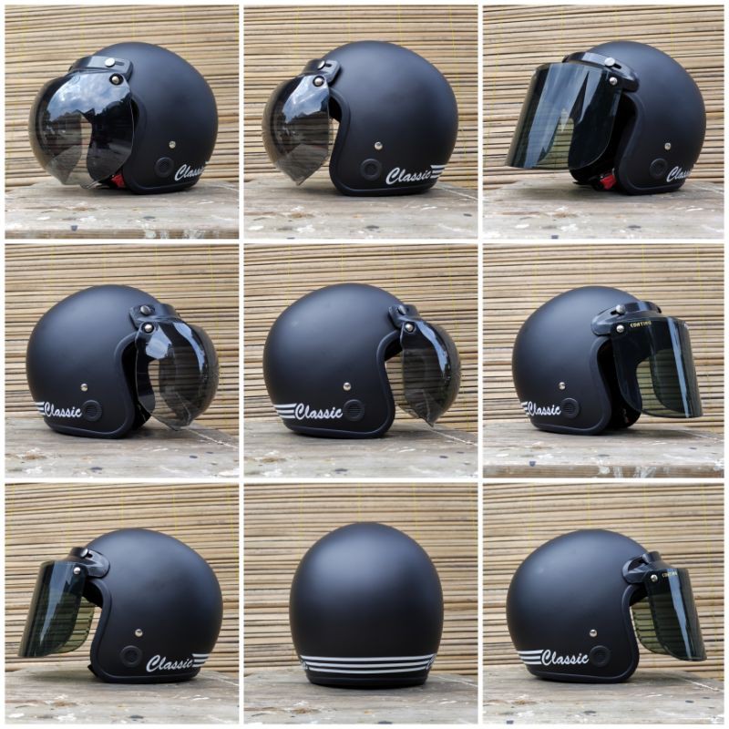 helm bogo classik garis tiga kaca datar flat sni pria wanita dewasa murah polos kaca helm classic