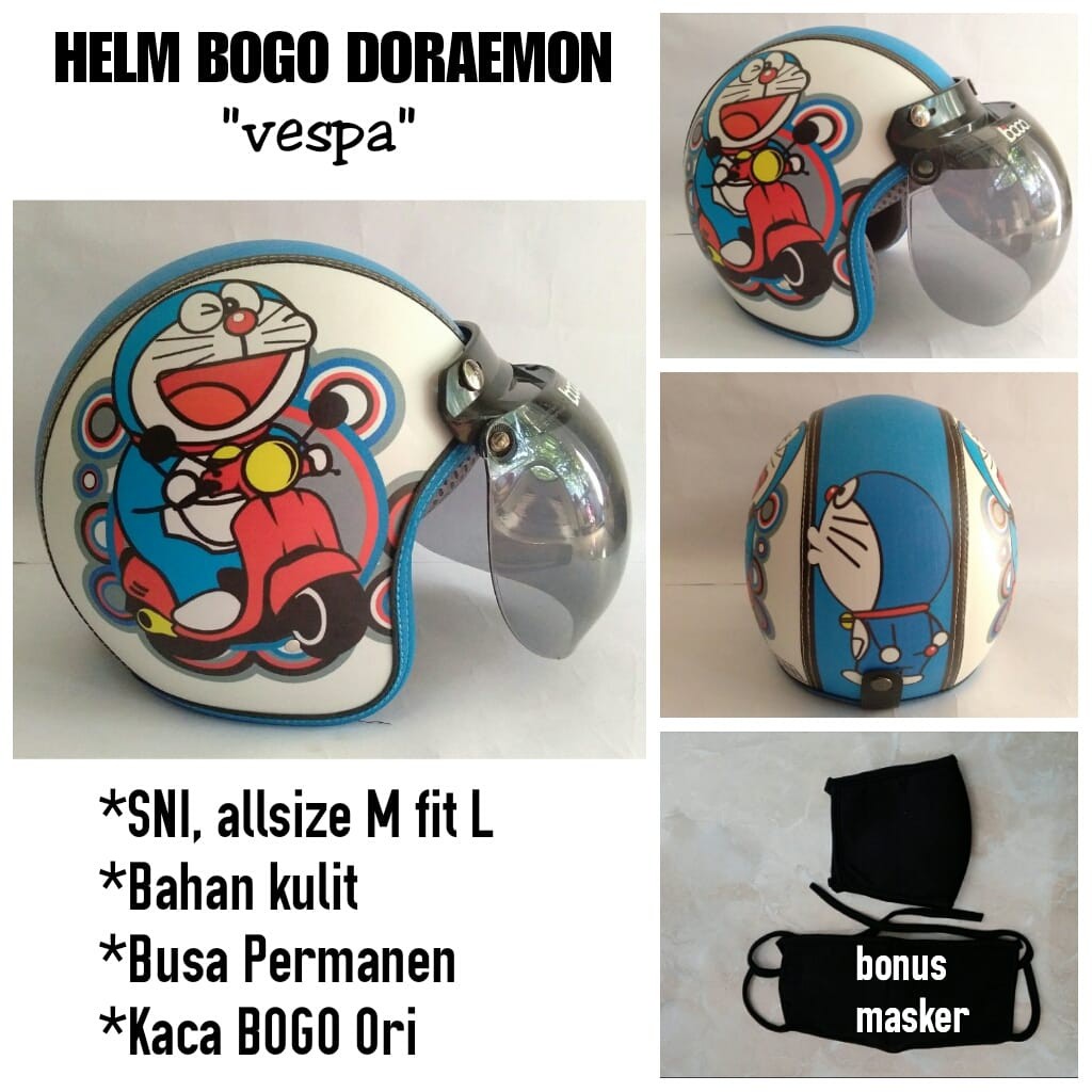 Alasan kenapa harus beli HELM BOGO Full Kulit Retro Klasik Motif dORAEMON bIRU kaca Bogo Original sekarang
