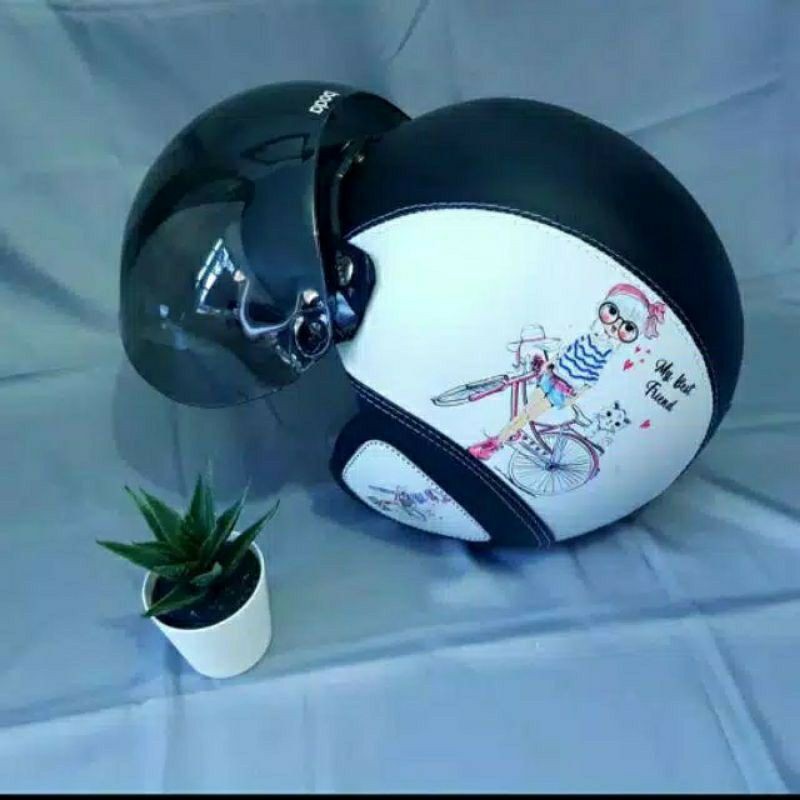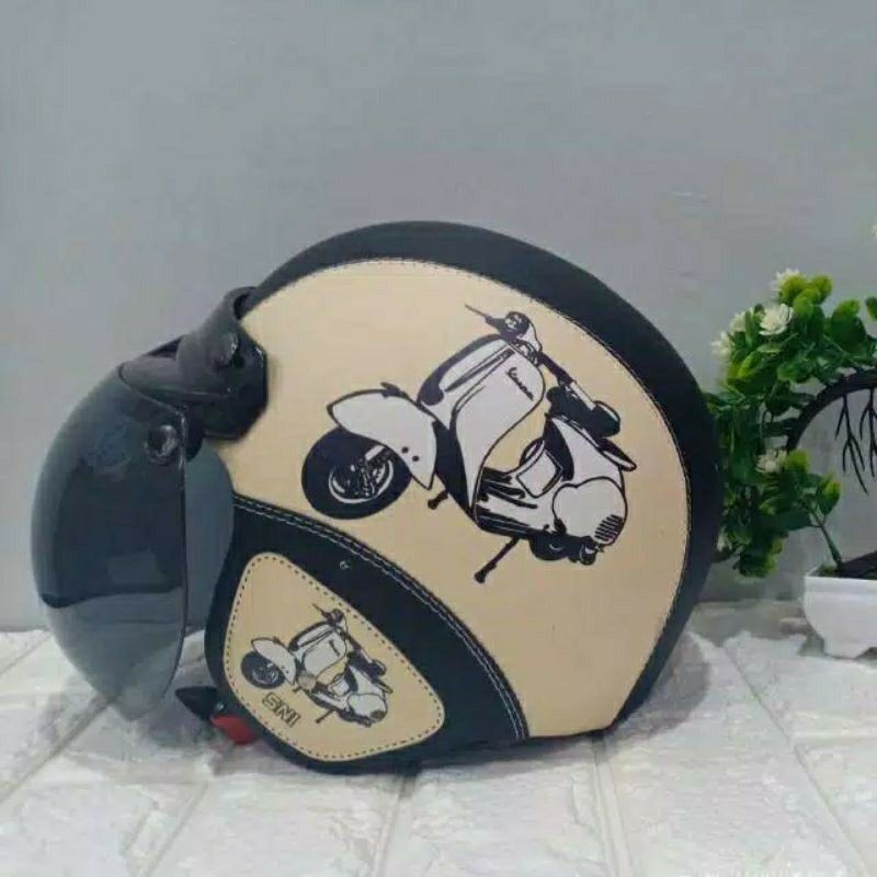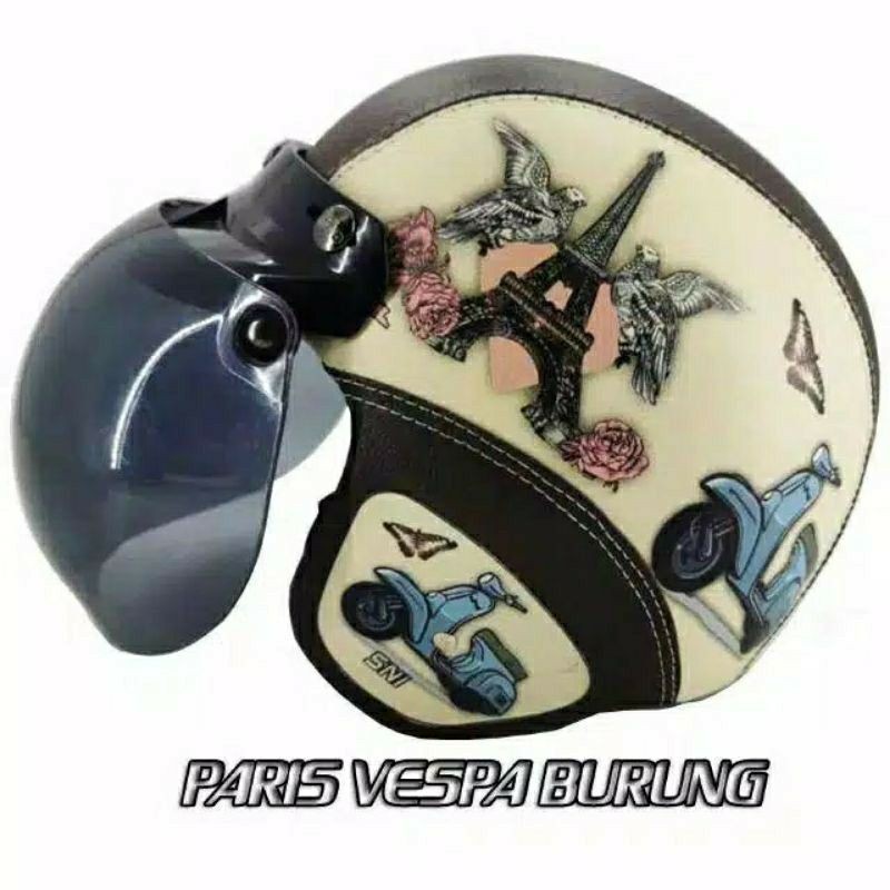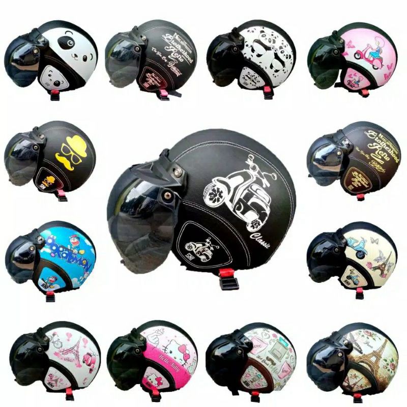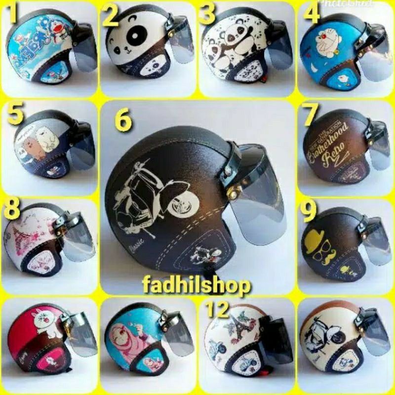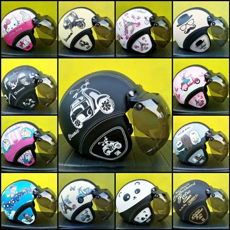(BISA COD) HELM RETRO KULIT PRINTING DEWASA MOTIF UNIK LUCU KARAKTER PLUS KACA CEMBUNG MURAH