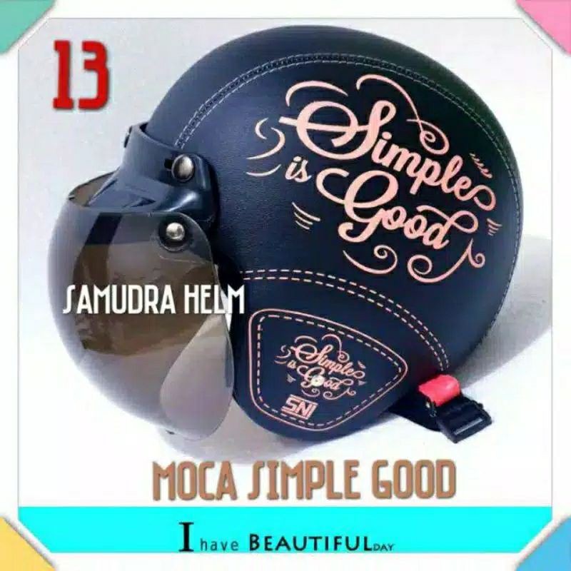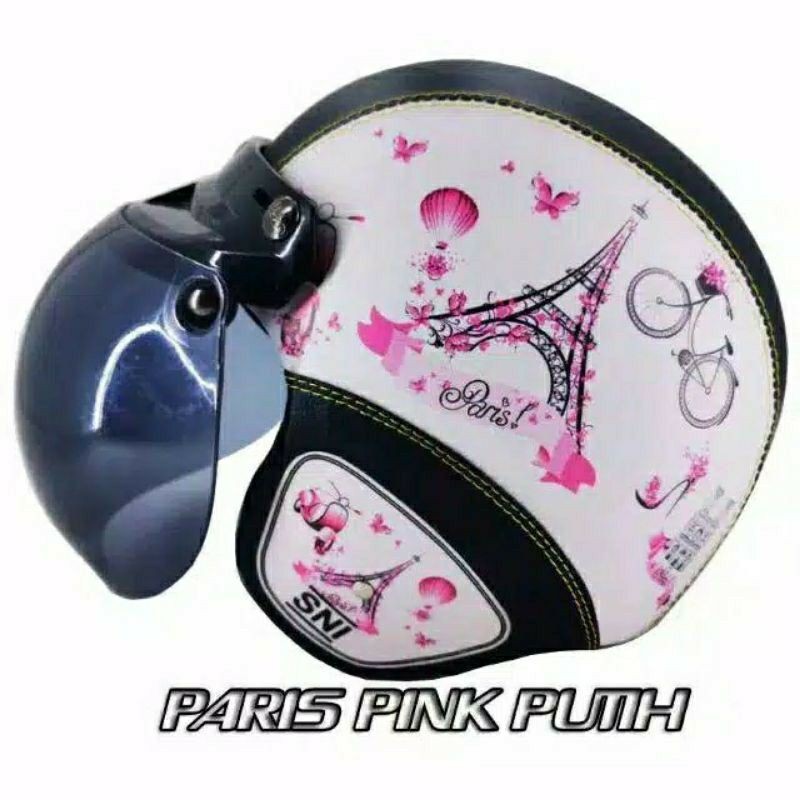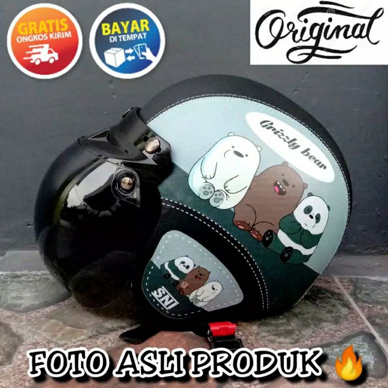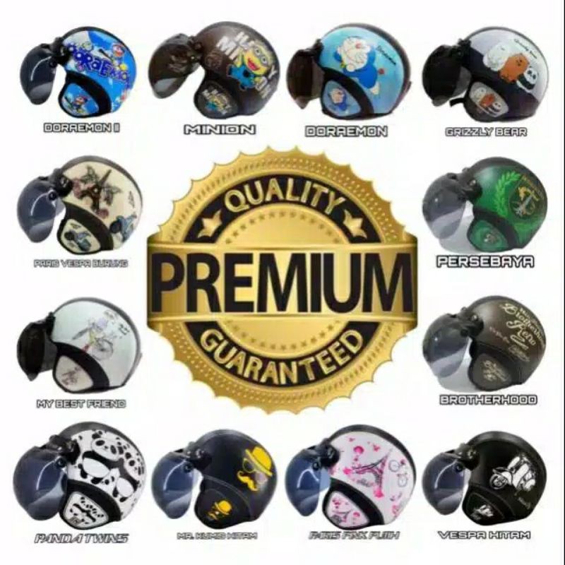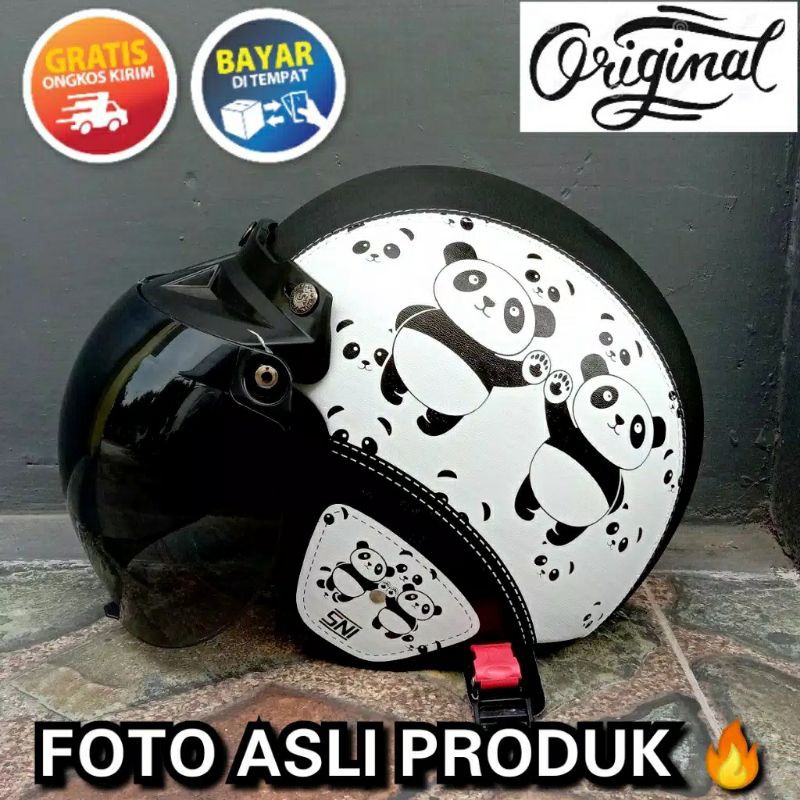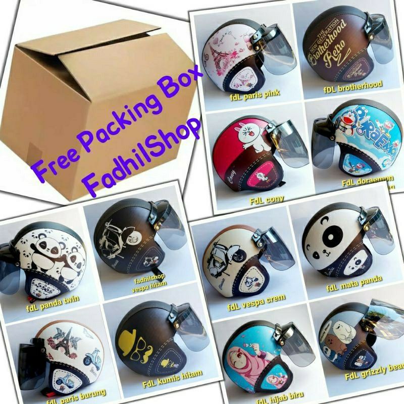 (BISA COD) HELM RETRO KULIT PRINTING DEWASA MOTIF UNIK LUCU KARAKTER PLUS KACA CEMBUNG MURAH