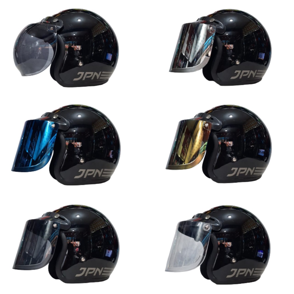 Helm Bogo JPN ARC Hitam Glosy Kaca Visor Flat Datar Cembung Topi