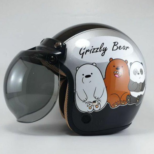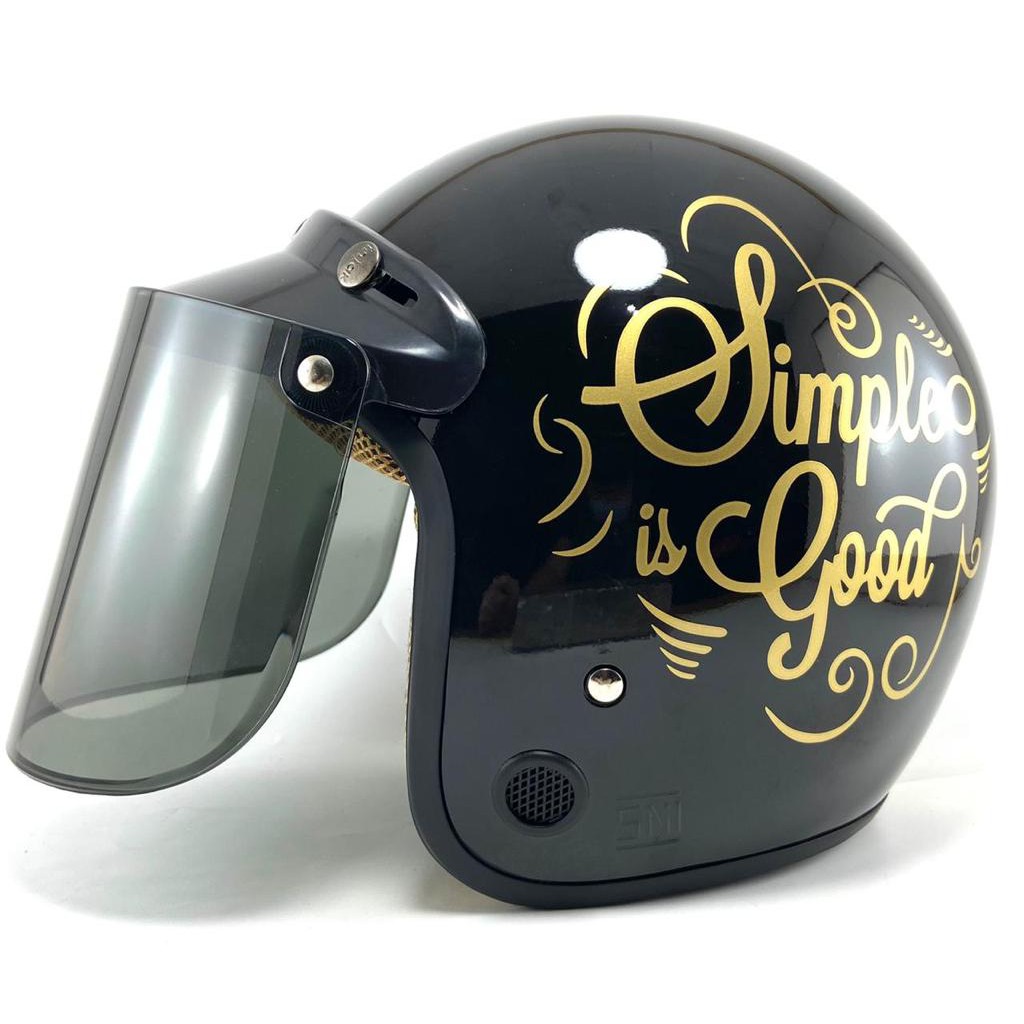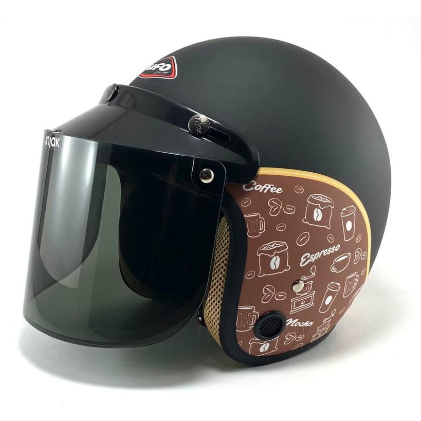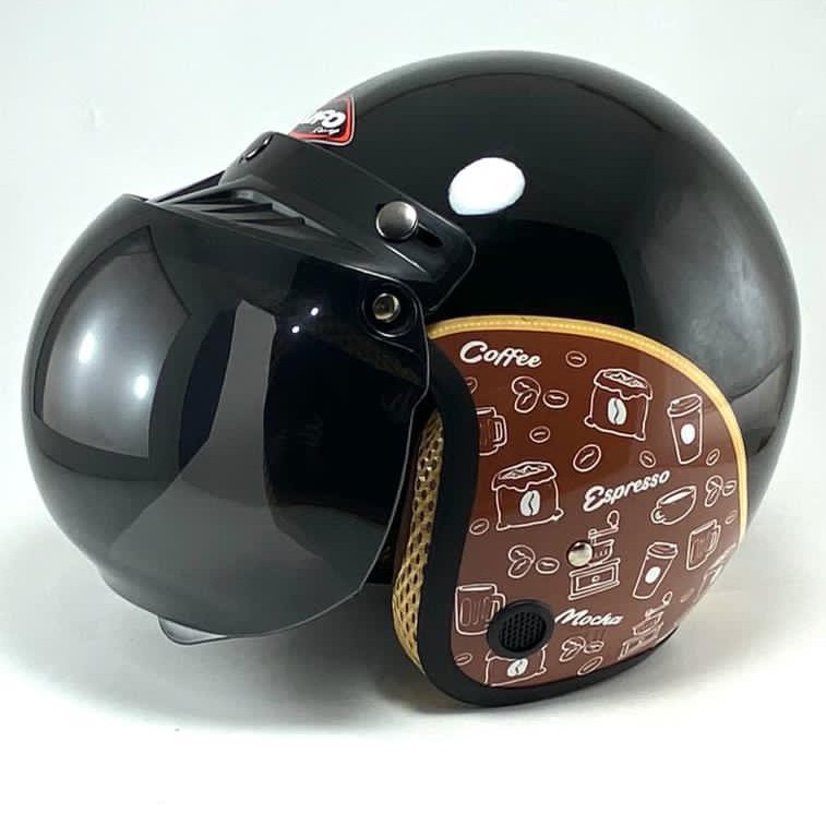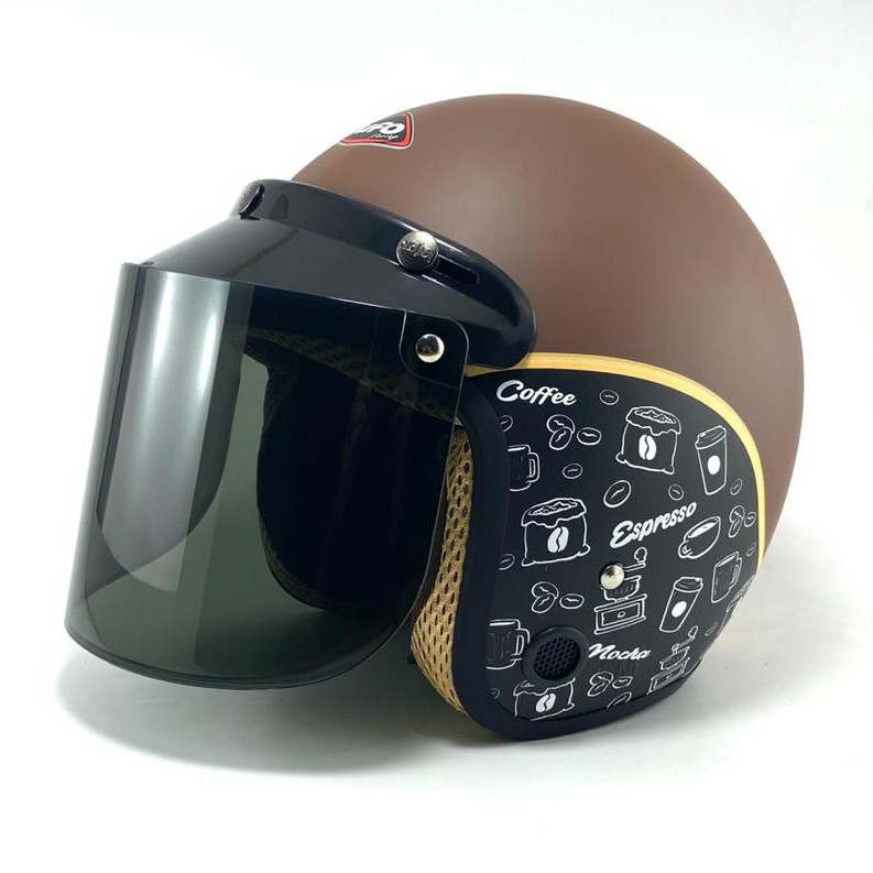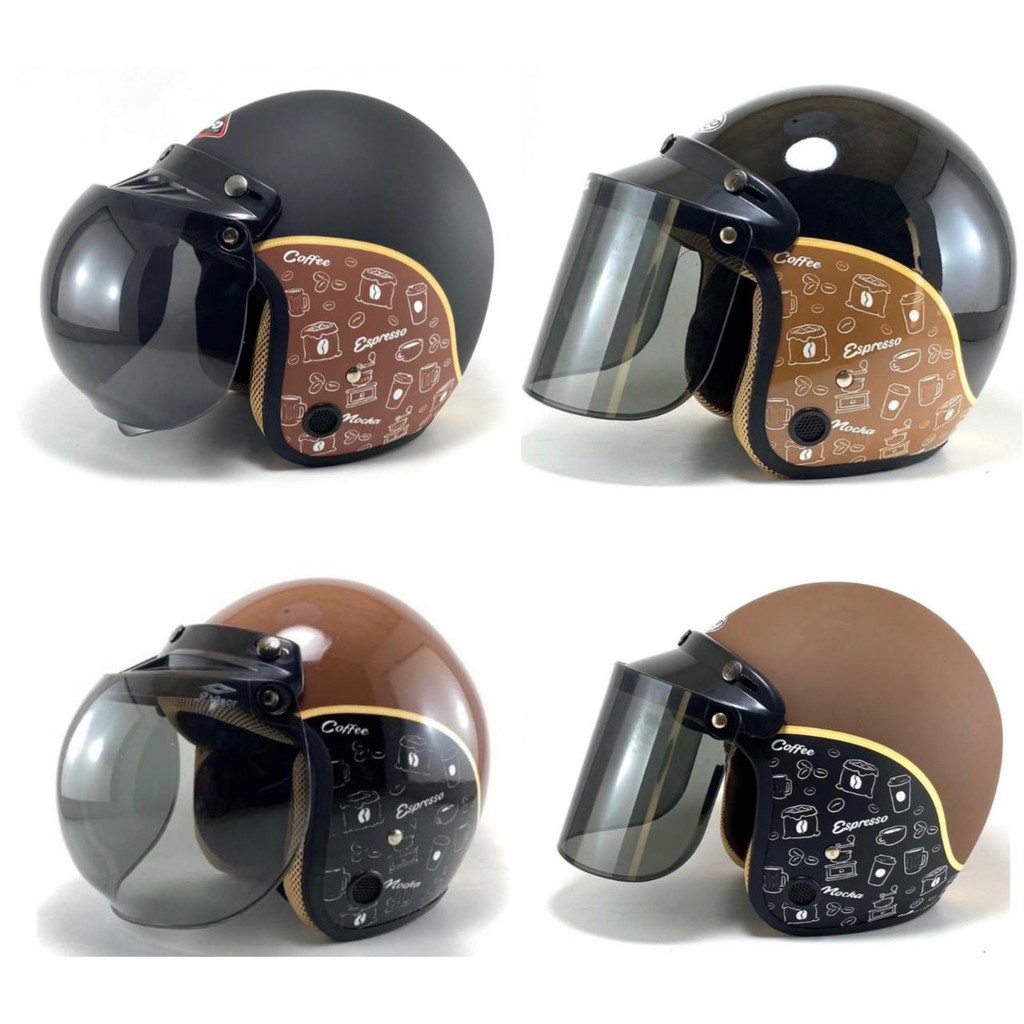 Skutershop JPN Helm Bogo Retro SNI Klasik Polkadot Polca Retro Lucu Hitam Doff Gold Kaca Bogo Ori