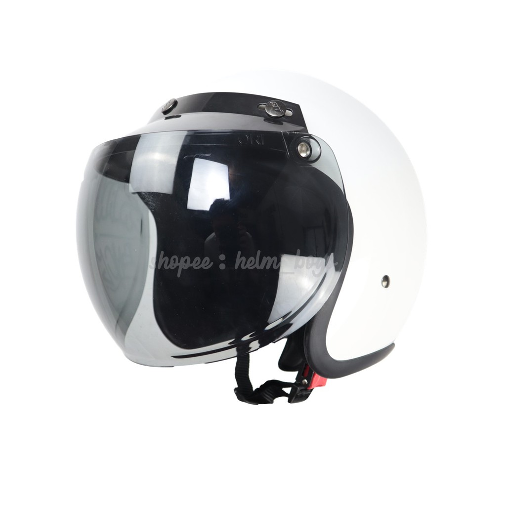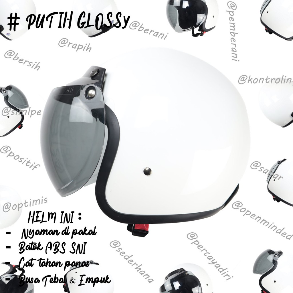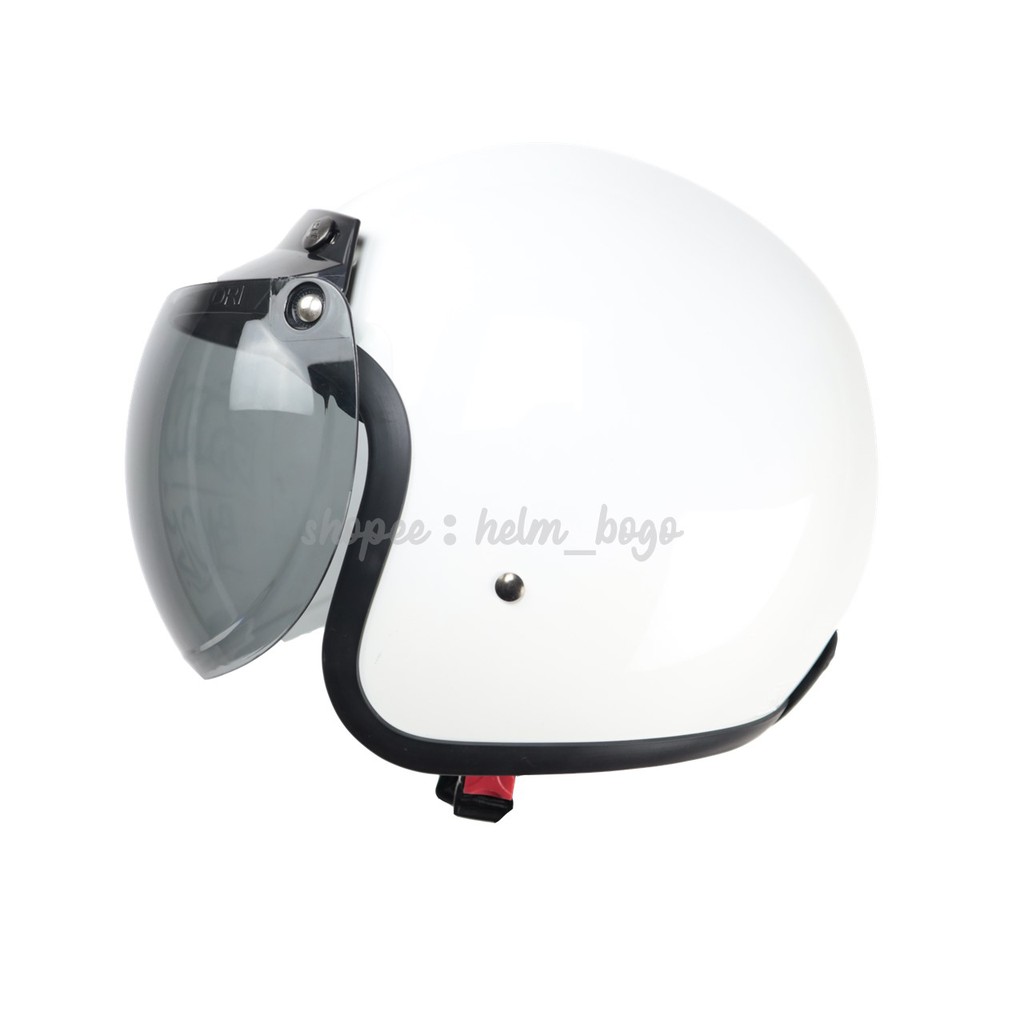Helm Bogo Retro Bayklasik Putih Glosy Polos Kaca Bogo Original Cembung Hitam Smoke standart SNI