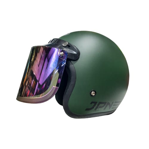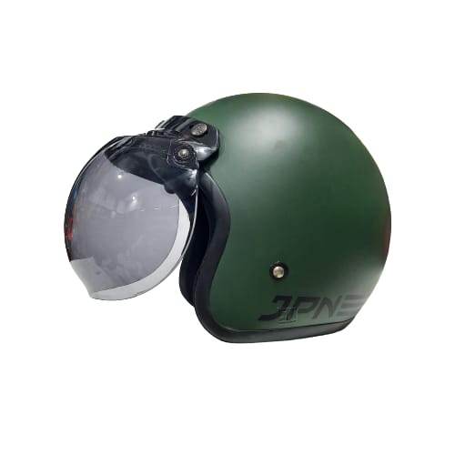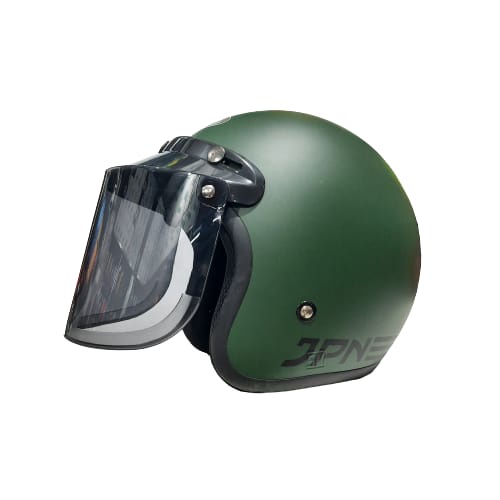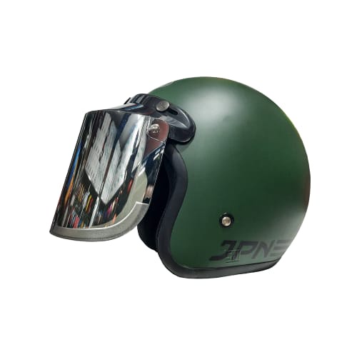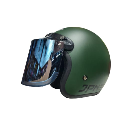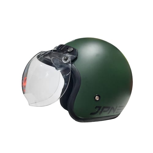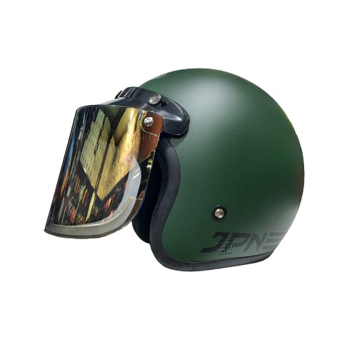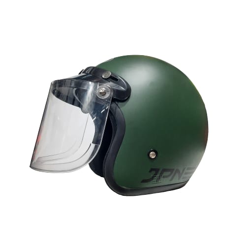Helm Bogo Retro JPN ARC Hijau Army Doff Kaca Visor Flat datar cembung