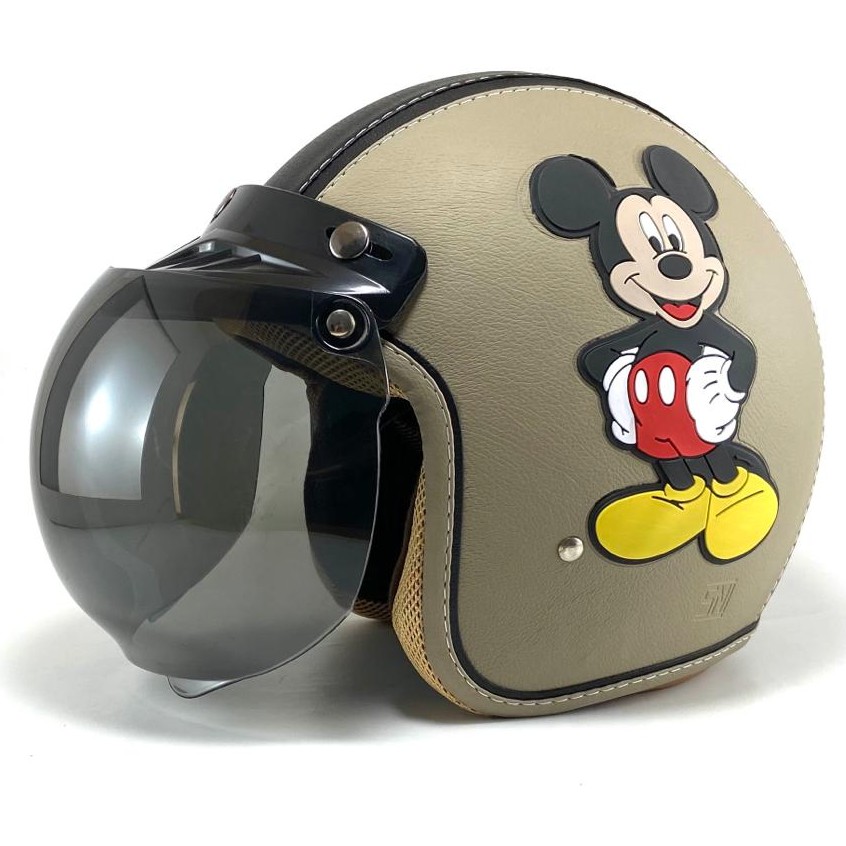 Helm Bogo Retro Kulit Full Leher Stitch Mickey Dewasa SNI