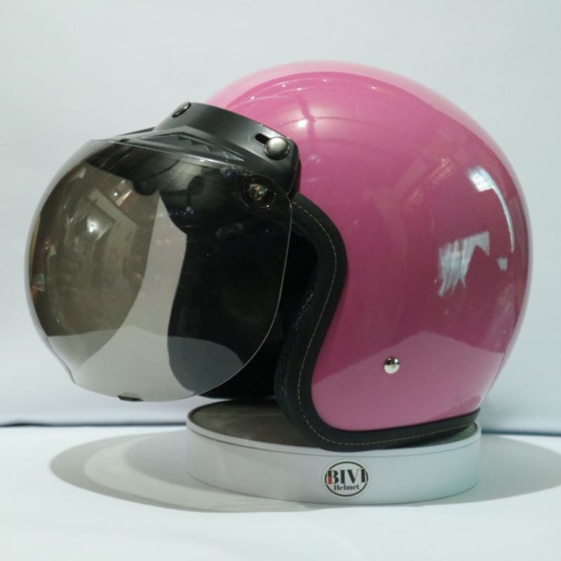 Helm Bogo Dewasa/Remaja Retro Klasik Gaya Asik Kaca BOBO Original - Pink Biru Muda