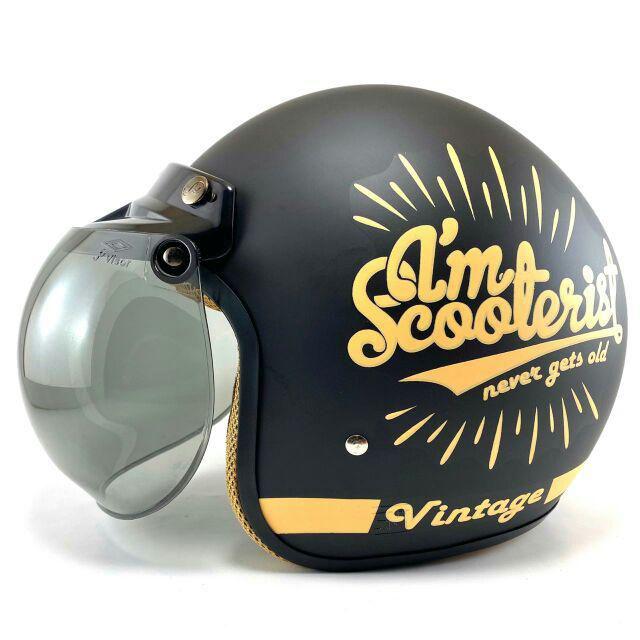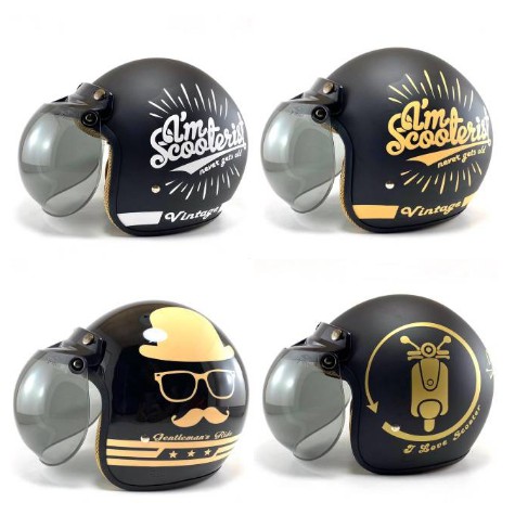 Helm Bogo Scooterist Retro HD Emas Kaca Datar Injak