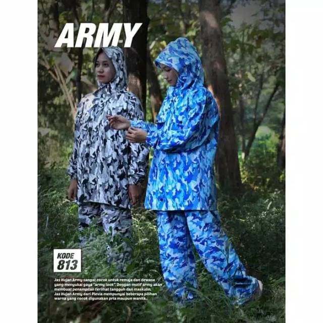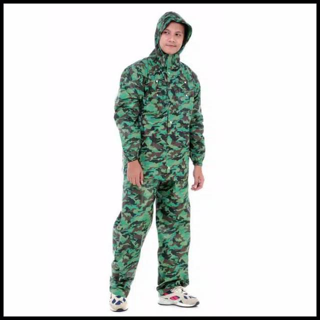 Jas Hujan Army Plevia 813 / Jas Hujan Stelan Dewasa Loreng Doreng TNI / Mantel Pria Army Terlaris
