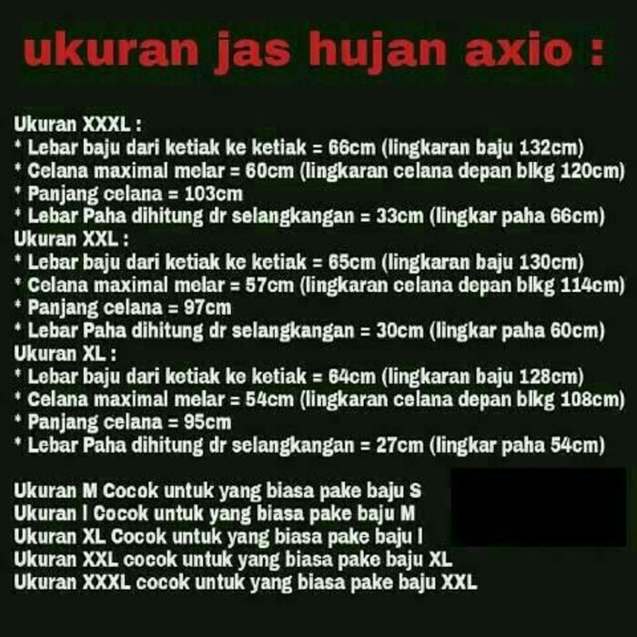Rifan Juga punya 4 Produk lain terkait Produk Jas Hujan AXIO Europe 882 ORIGINAL Bahan Parasut Taslan Ukuran S M L dan XL Pengiriman Cepat Langsung Kirim yang perlu Anda lirik karena menarik, Produk itu adalah....