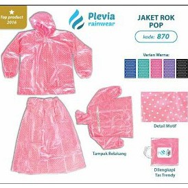 Jas Hujan Rok Polkadot Plevia POP 870 Stelan Perempuan Jaket Rok