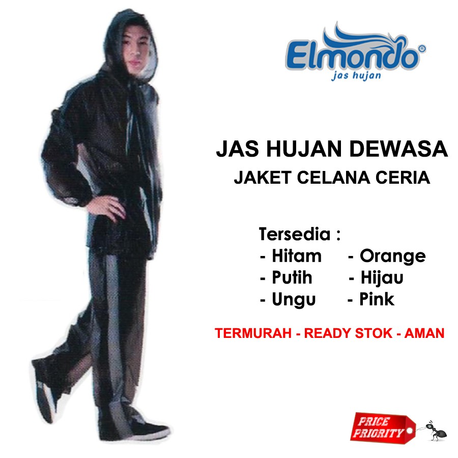 Harga JAS HUJAN Setelan Murah Jaket Celana Merk Elmondo Ceria 935 TERMURAH / Jas Hujan Jaket Celana Murah saat ini masih murah hanya Rp. 23.500,00, kita tidak akan pernah tahu tentang Harga ini di masa depan, juga stok barang ini nanti atau besok hari, bisa saja harganya naik tinggi atau bisa juga stok sudah Habis.