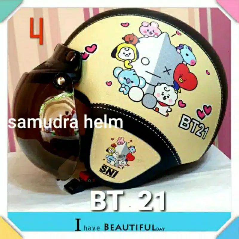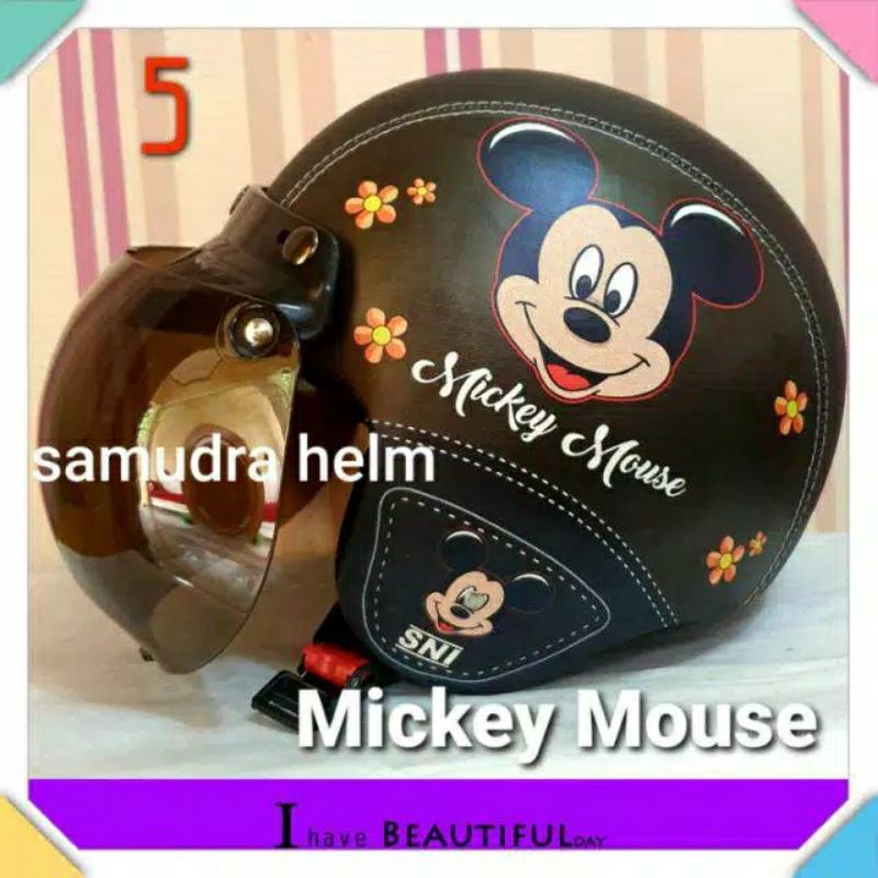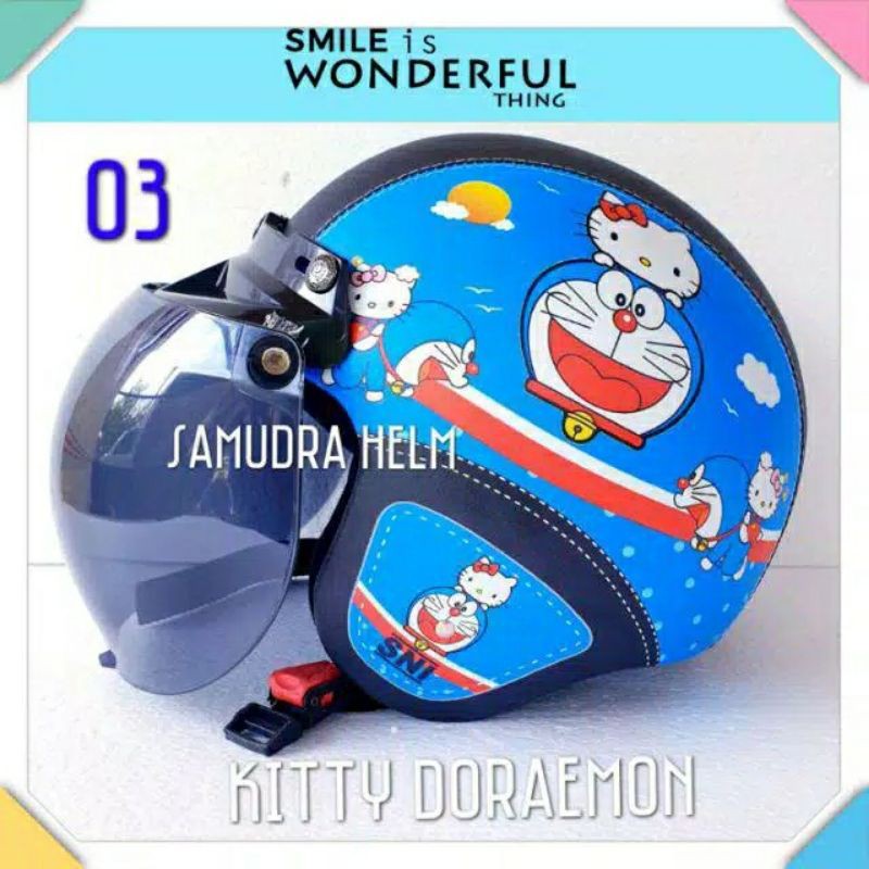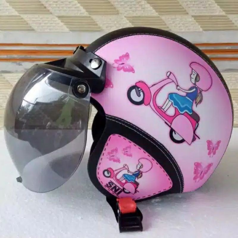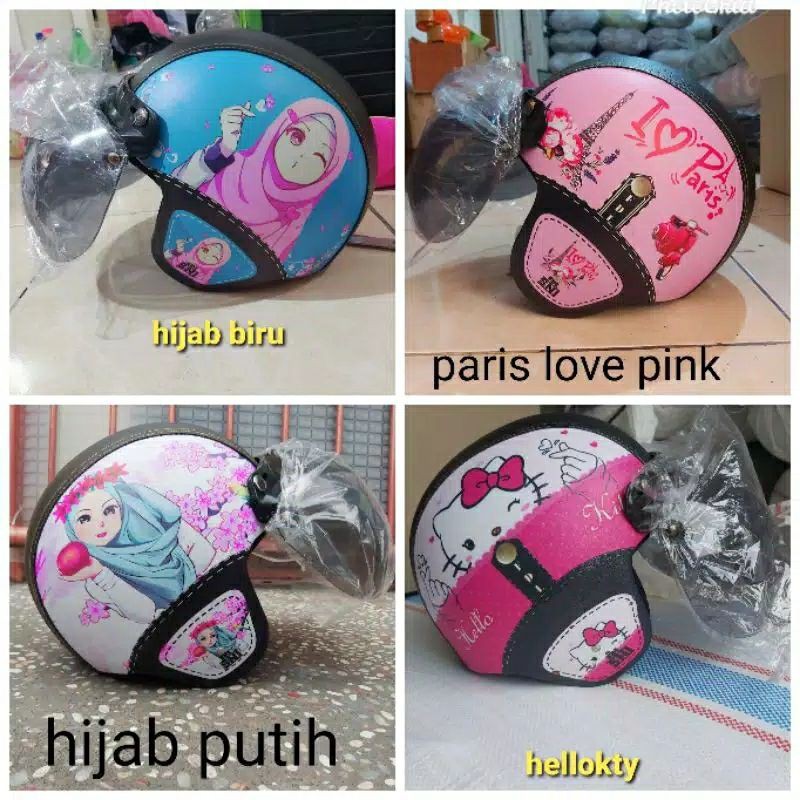 (BISA COD) HELM RETRO KIDS ANAK BALITA FULL KULIT PLUS KACA CEMBUNG KARAKTER LUCU UNIK MURAH
