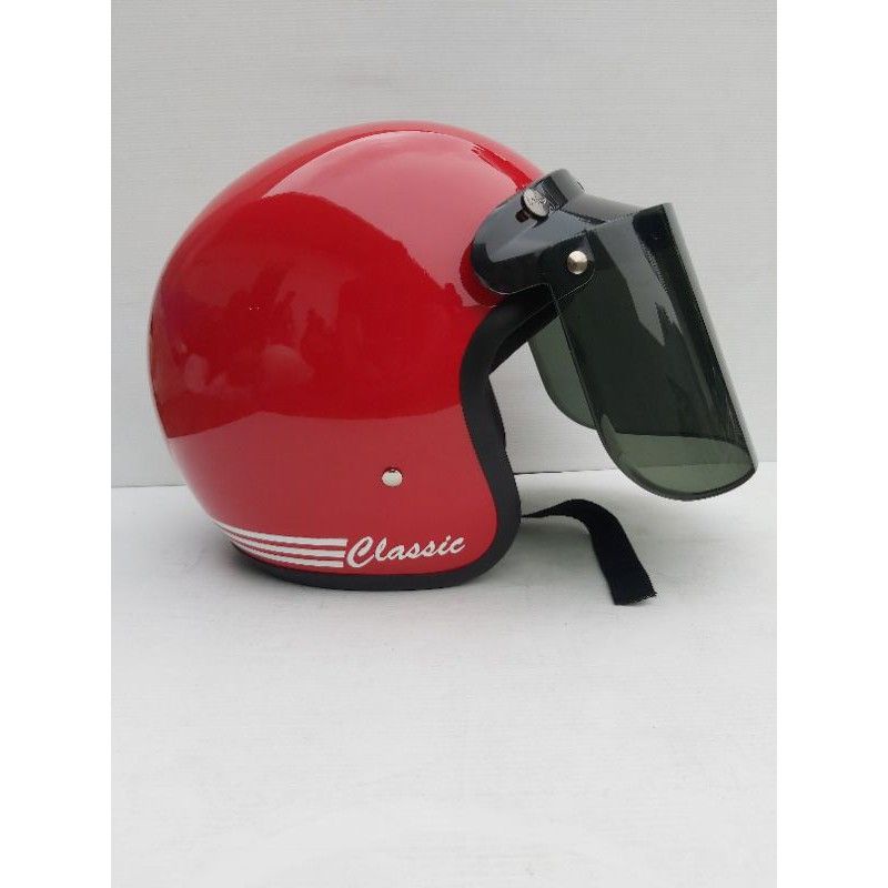 HELM BOGO DEWASA CLASIC SUDAH + KACA DATAR INJAK
