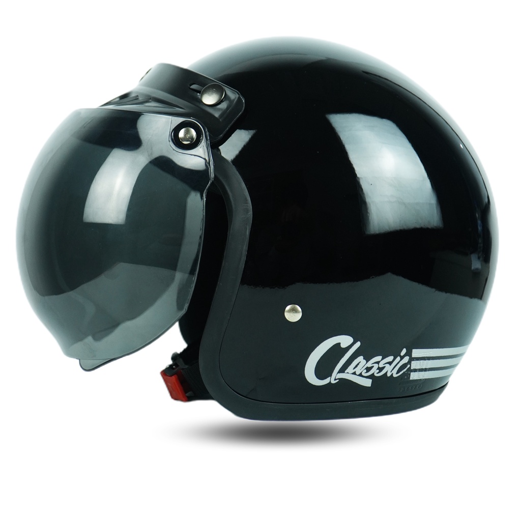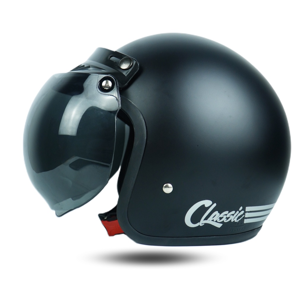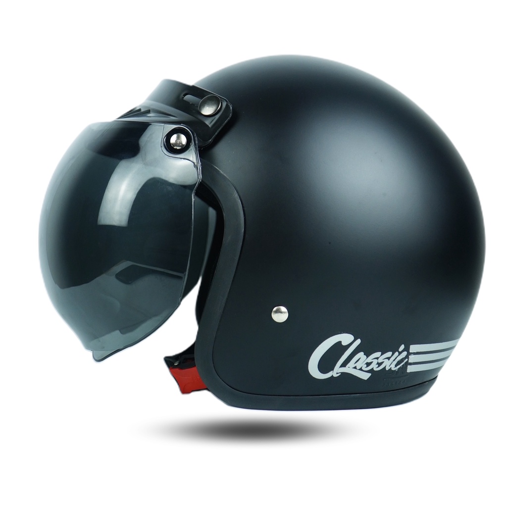 helm bogo classik garis tiga kaca datar flat sni pria wanita dewasa murah polos kaca helm classic
