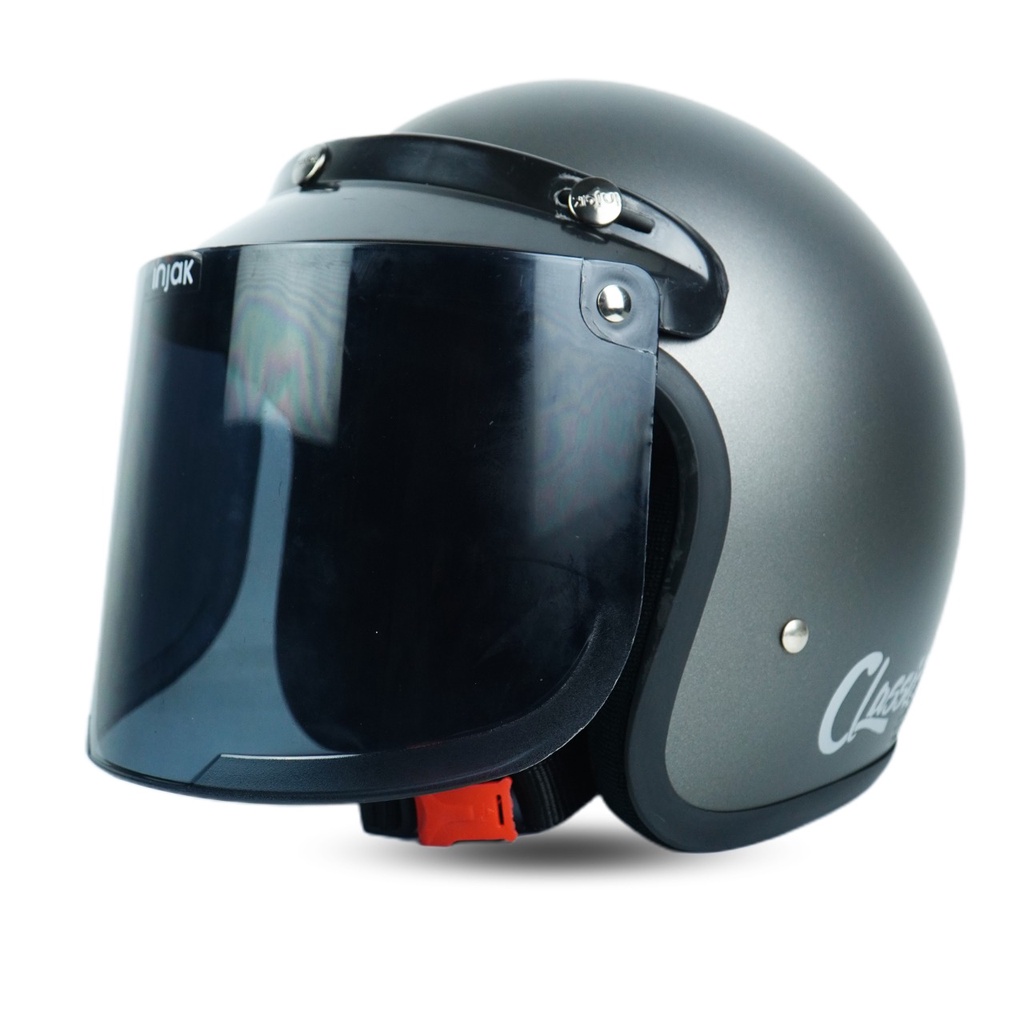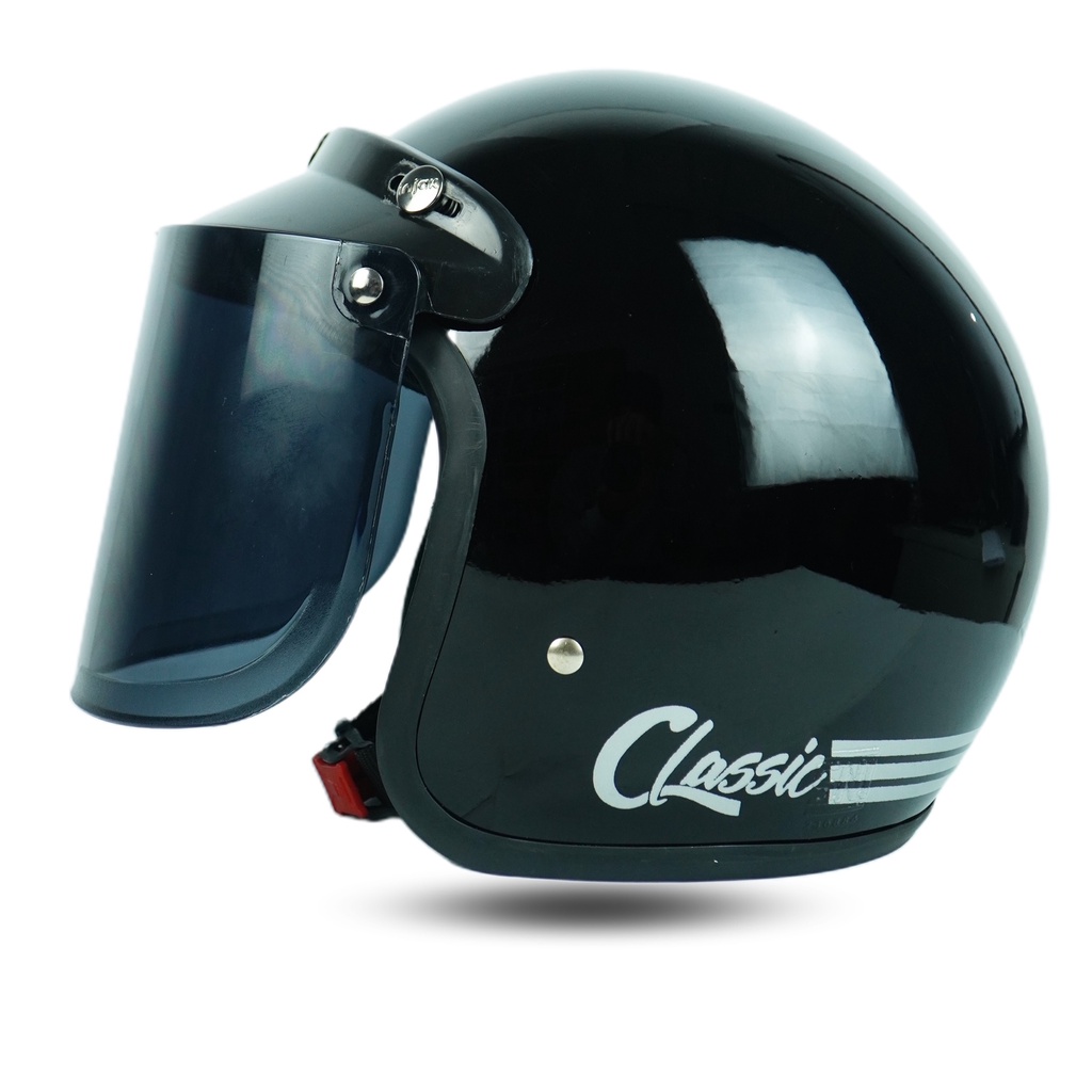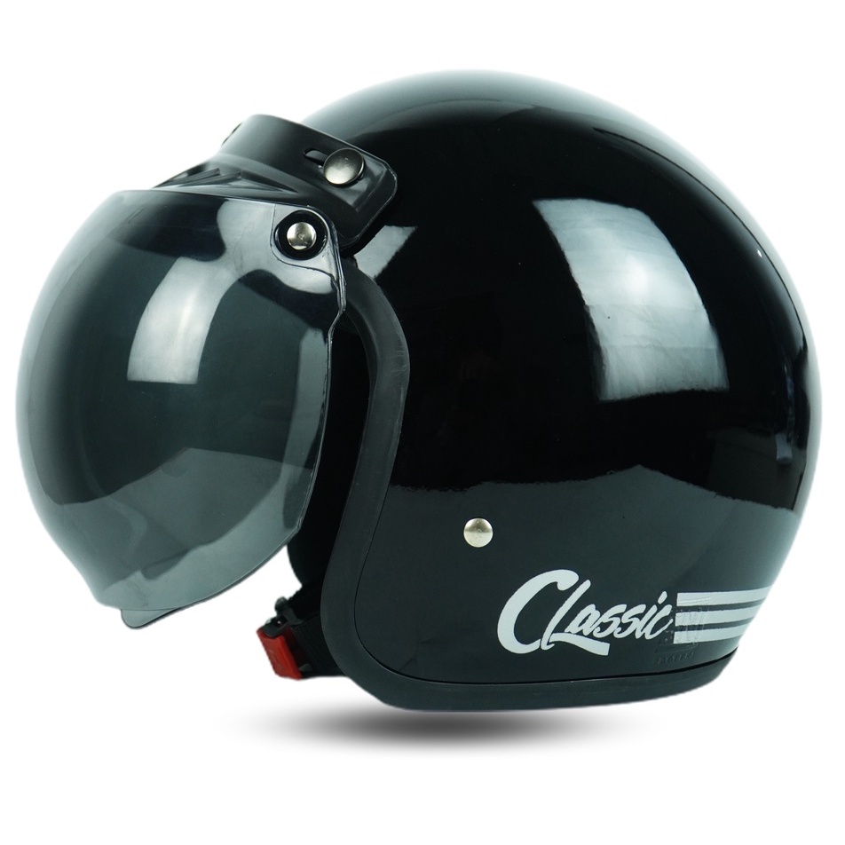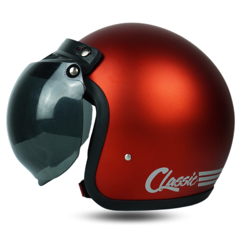 helm bogo classik garis tiga kaca datar flat sni pria wanita dewasa murah polos kaca helm classic