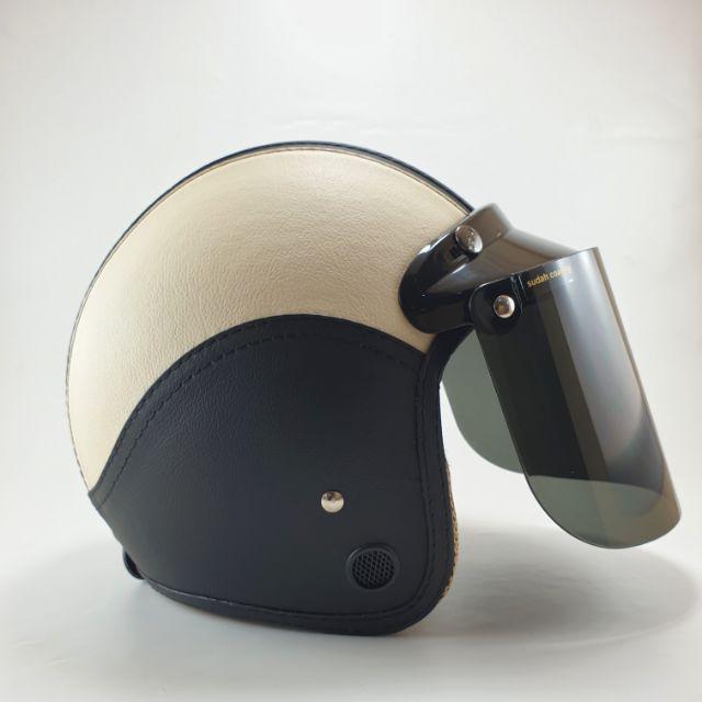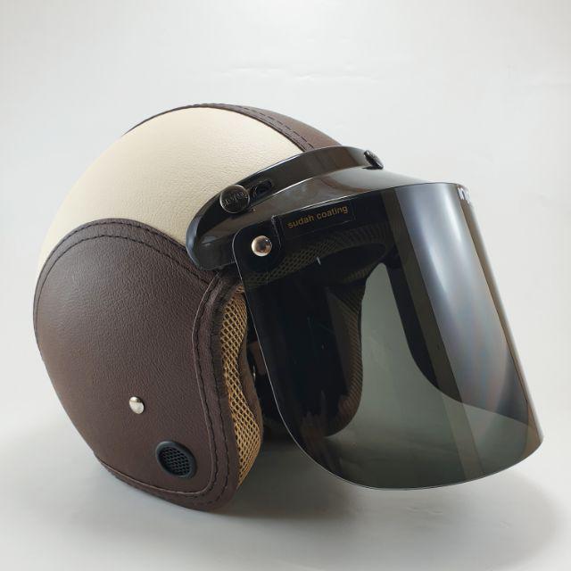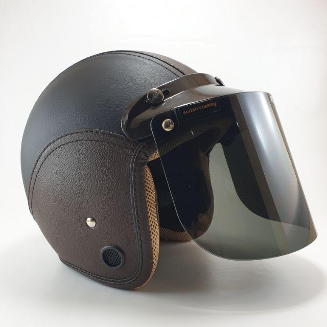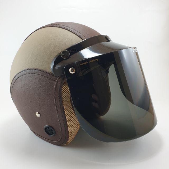 Helm Bogo Dewasa Kulit Retro Full Leher SNI Kaca Datar Injak