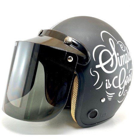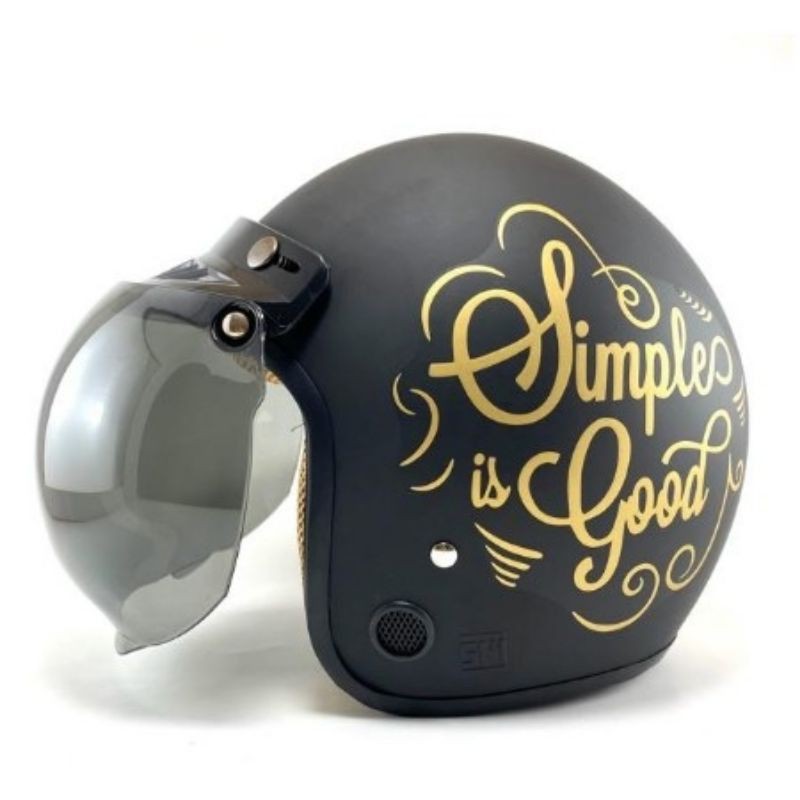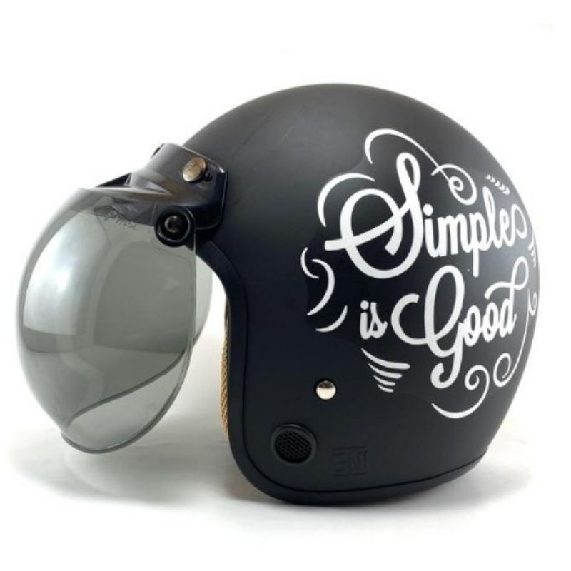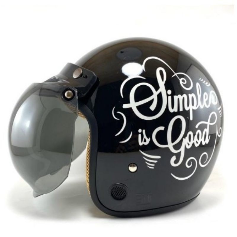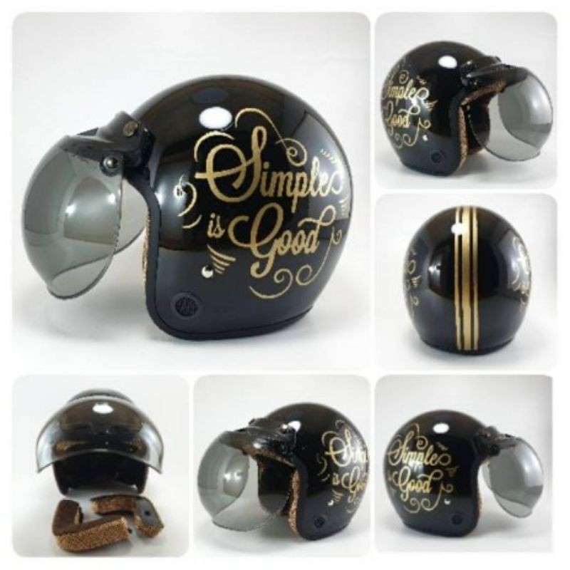 Helm Bogo Dewasa Simple Good Kaca Cembung Hitam Retro Motor SNI