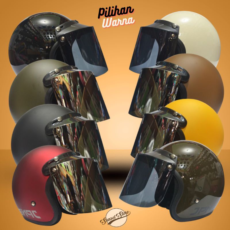 Kelebihan - Kelebihan membeli Helm Bogo JPN Cewek Cowok Vespa Retro Klasik Premium Kaca Datar Smoke Trendi Keren Terbaru 2021 di Toko ini