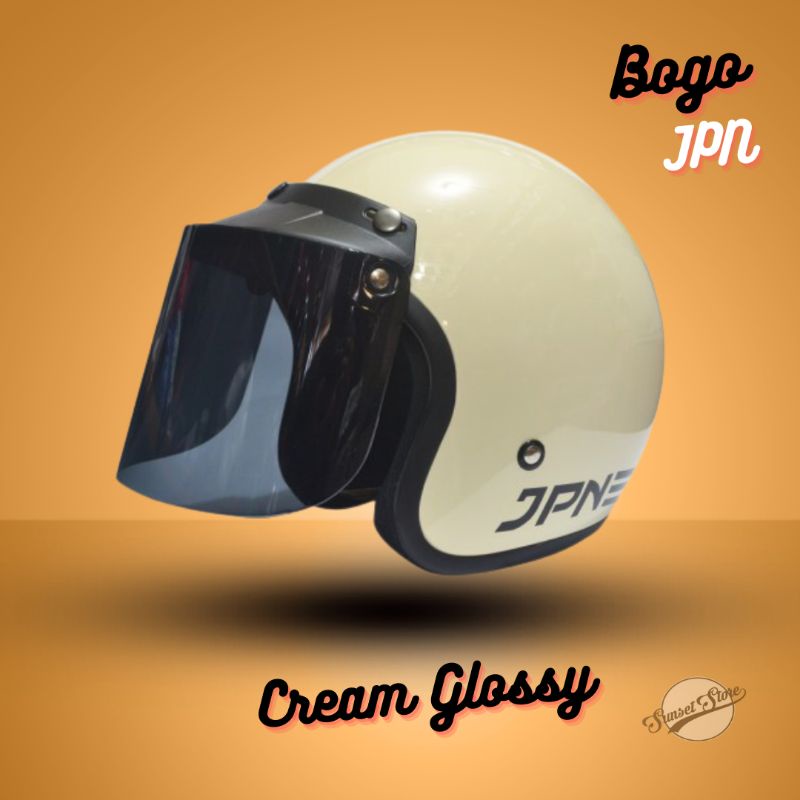 Helm Bogo JPN ARC Kaca Datar Kaca Cembung Cream Glossy