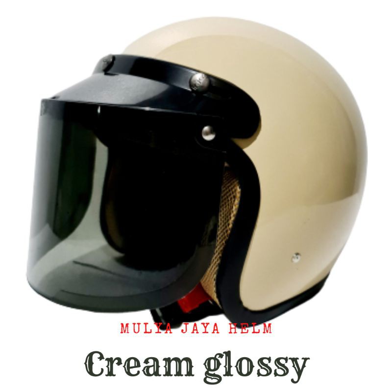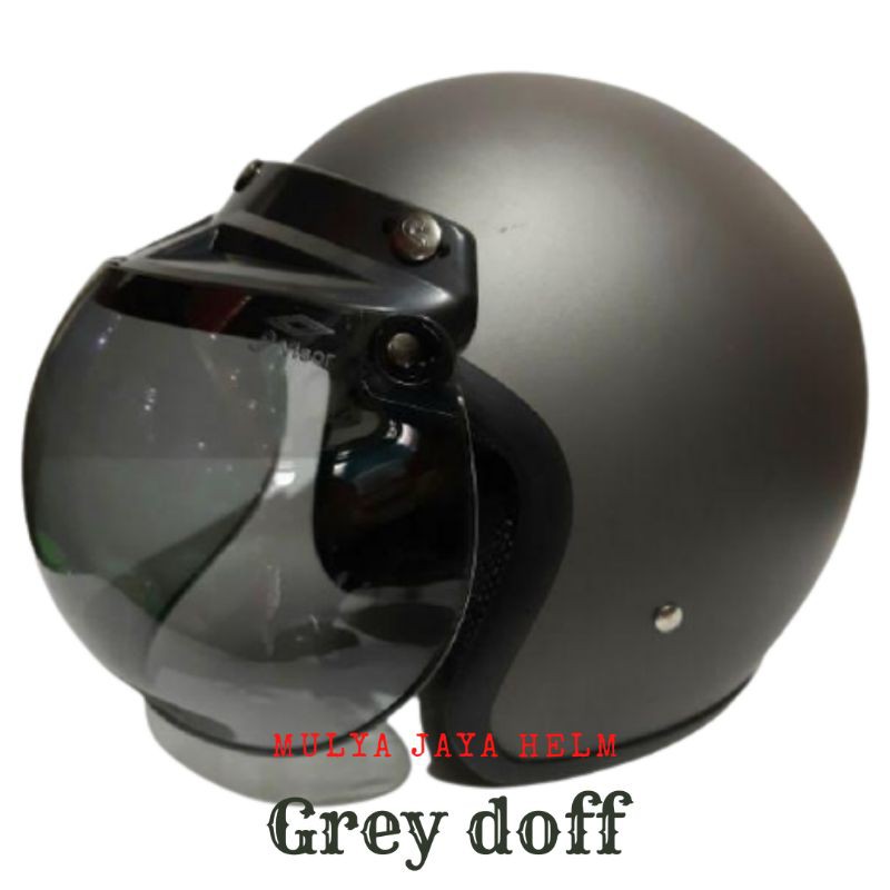 Helm Bogo Dewasa Retro Klasik Kawai Vintage JPN Momo Kaca Pilot Riben Grey Granito Abu Gunmetal Doff SNI