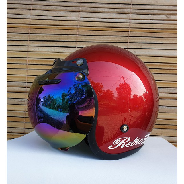 Kelebihan - Kelebihan membeli Helm bogo retro dewasa merah glossy bisa untuk wanita pria cewek cowok di Toko ini