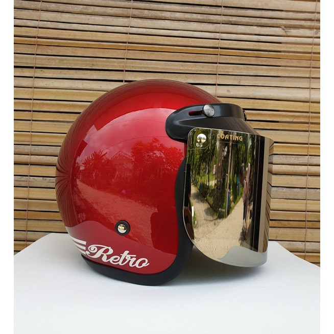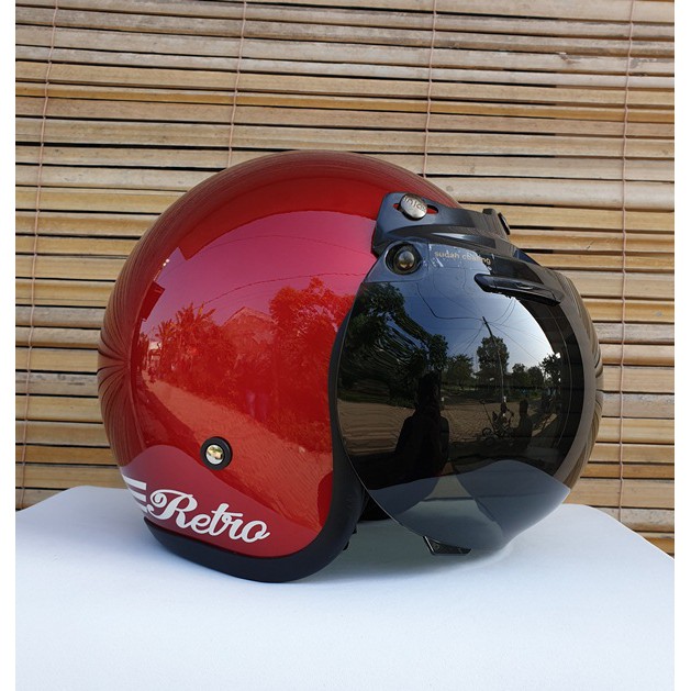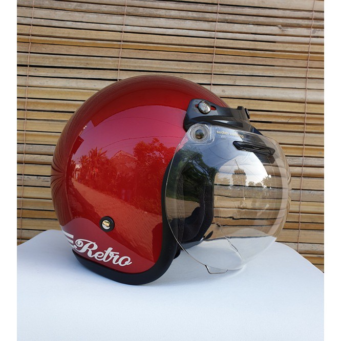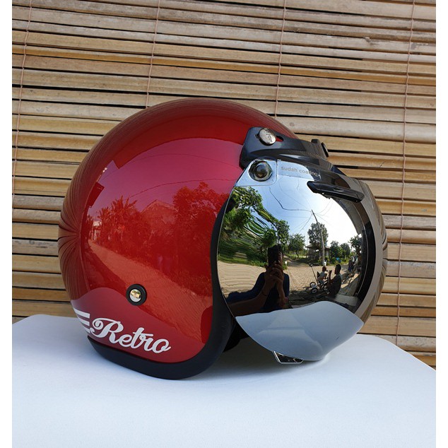 Helm bogo retro dewasa merah glossy bisa untuk wanita pria cewek cowok