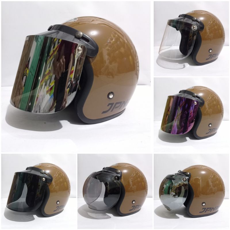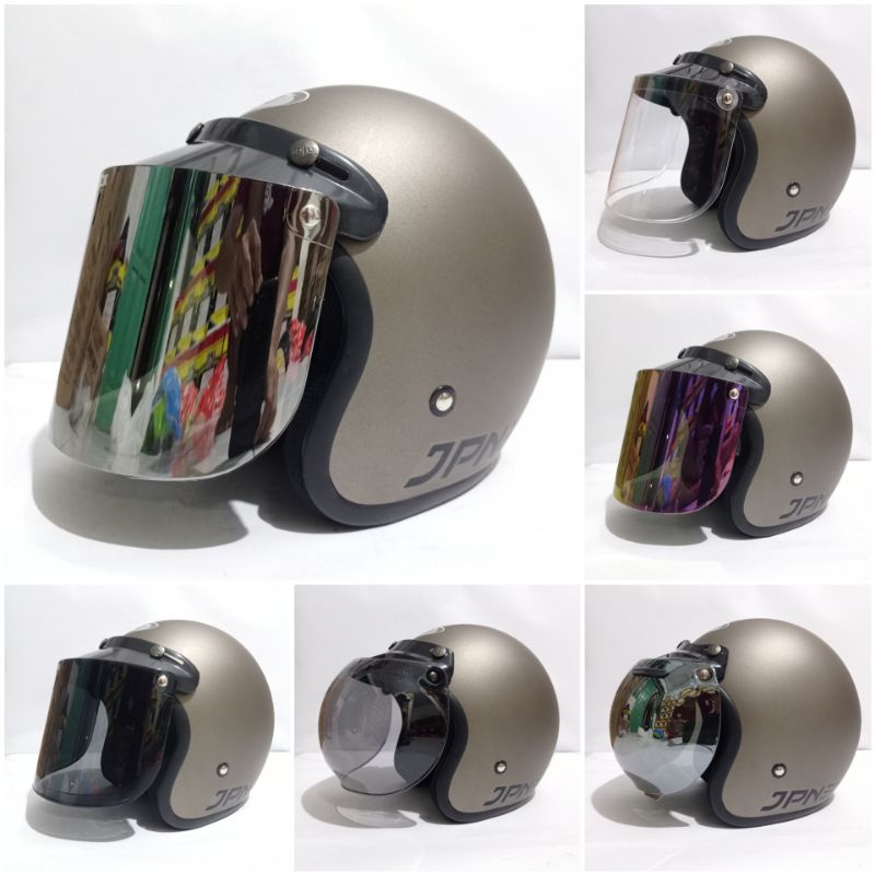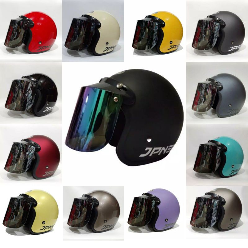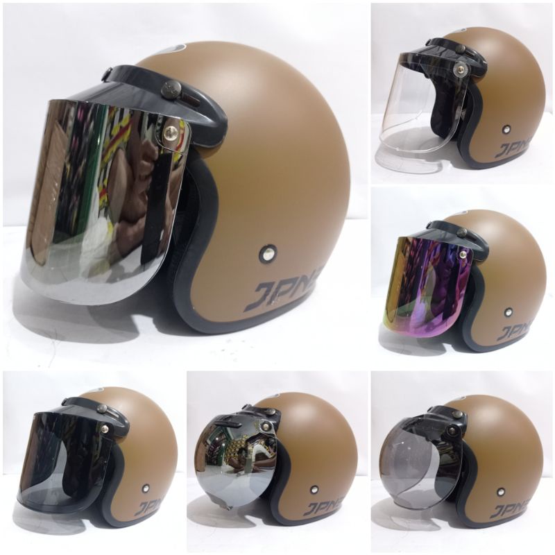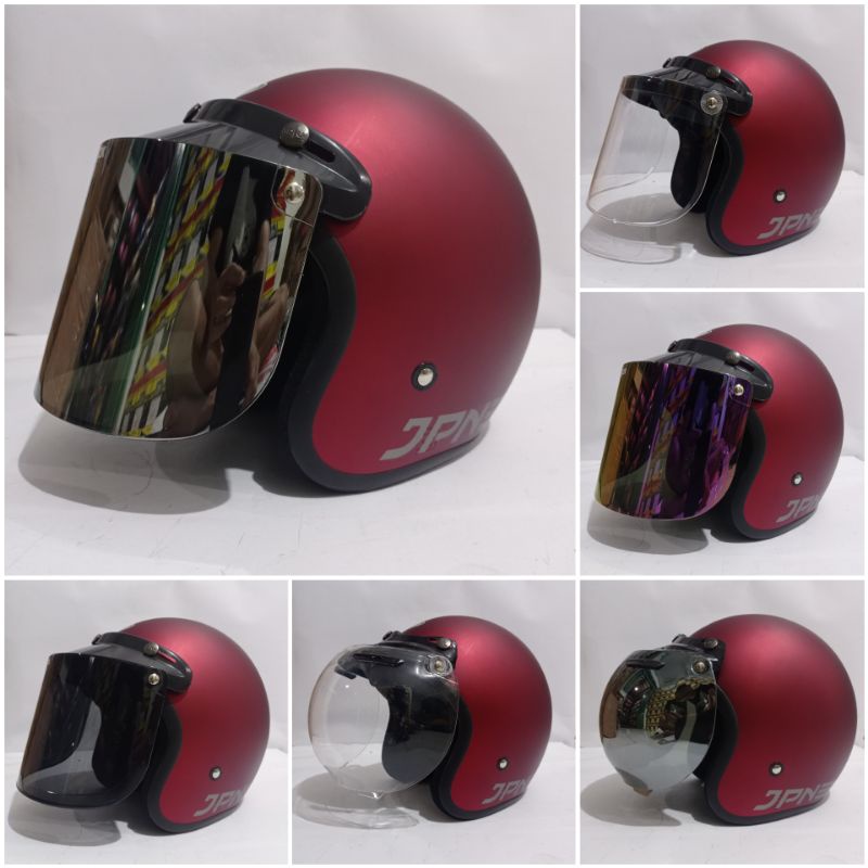 HELM BOGO RETRO DEWASA POLOS DOFF MERK JPN ORIGINAL KACA FLAT DATAR DAN CEMBUNG UNTUK PRIA WANITA