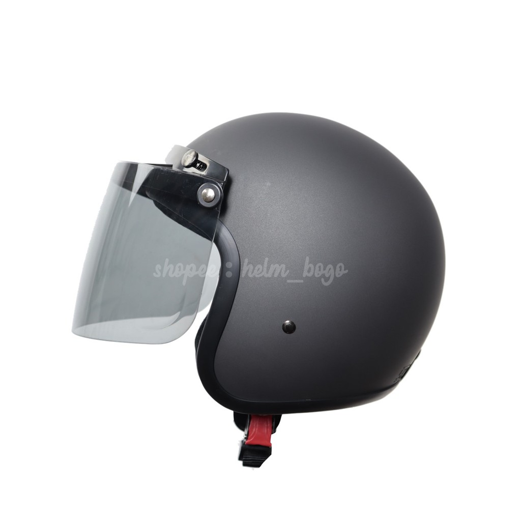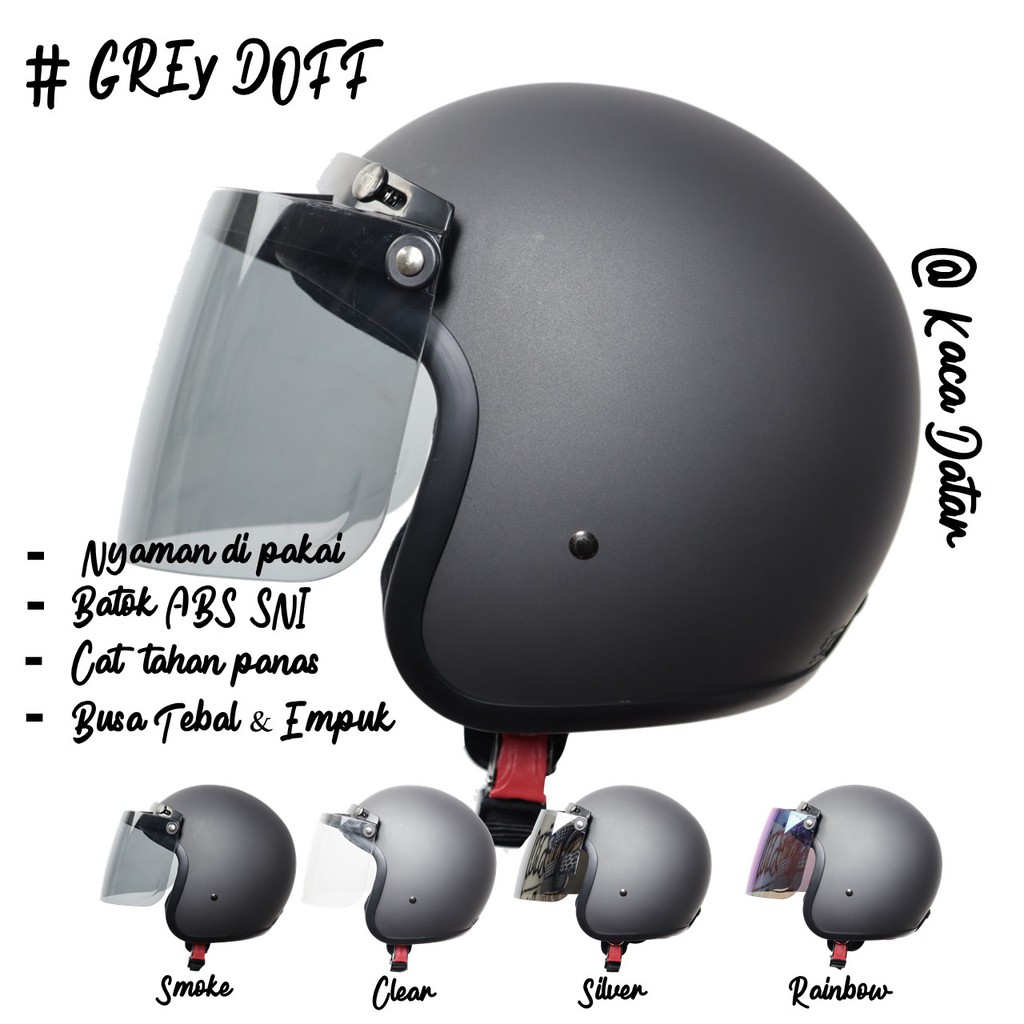 Helm Bogo Retro Grey Doff Polos Kaca Bogo Original Datar Flat Hitam Smoke standart SNI