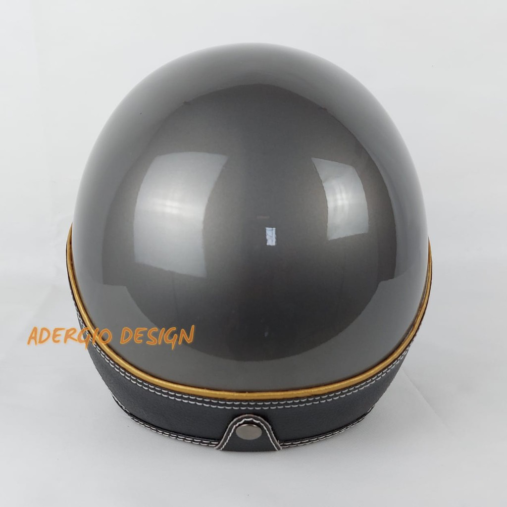 HELM BOGO Semi Kulit Grey Glossy Retro Klasik Kaca Bogo dan Osbe
