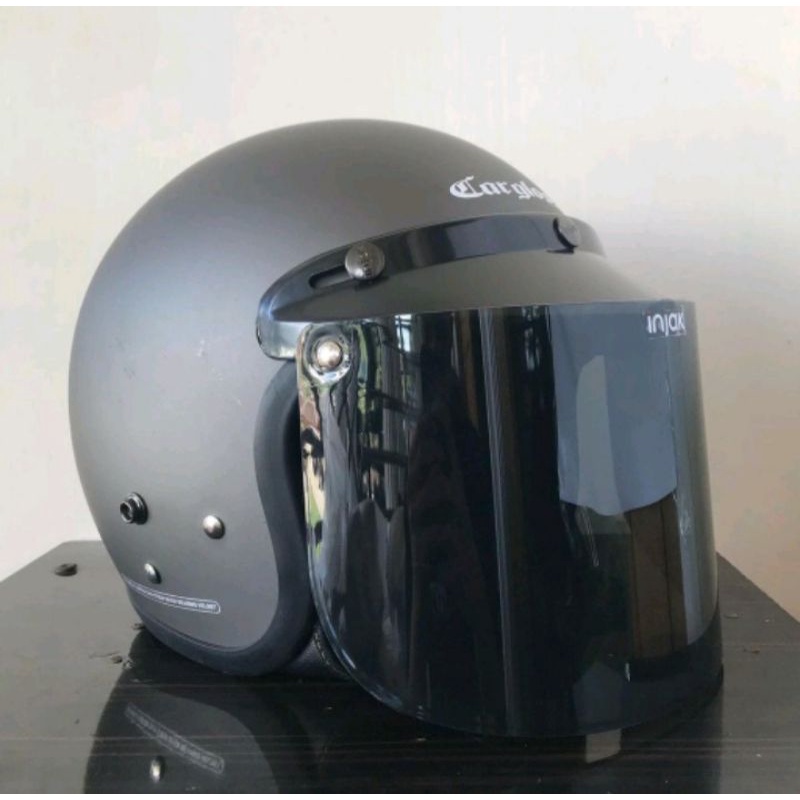 Helm Bogo Jpn retro arc Hitam Black Doff Kaca datar flat Visor