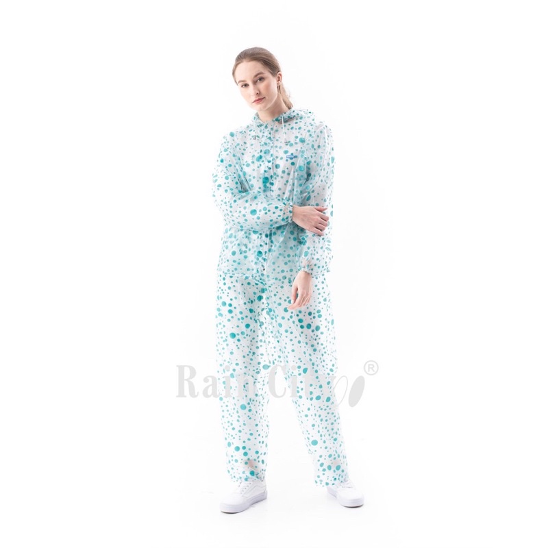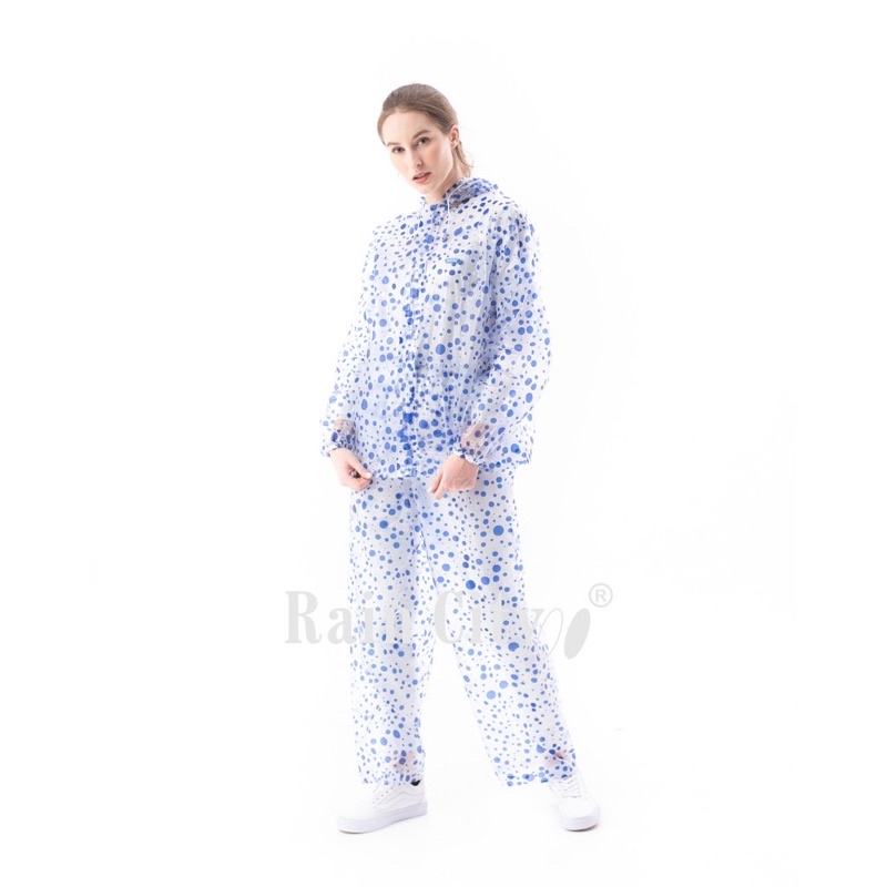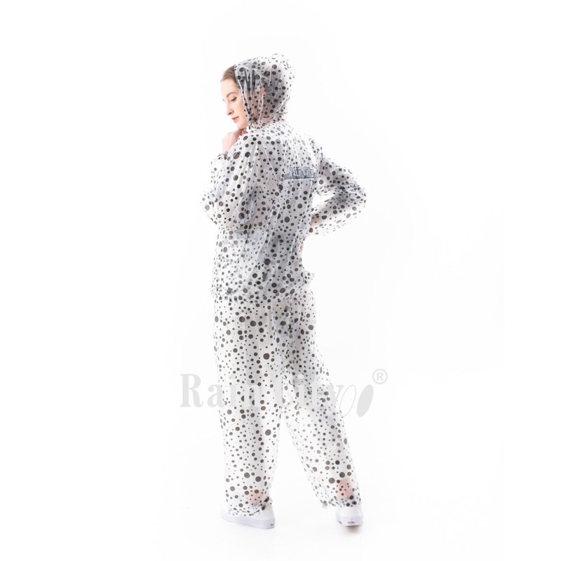 Jas Hujan Wanita Dewasa Setelan Bahan Tebal Putih Motif BIntang Stelan Star - LJM 210415