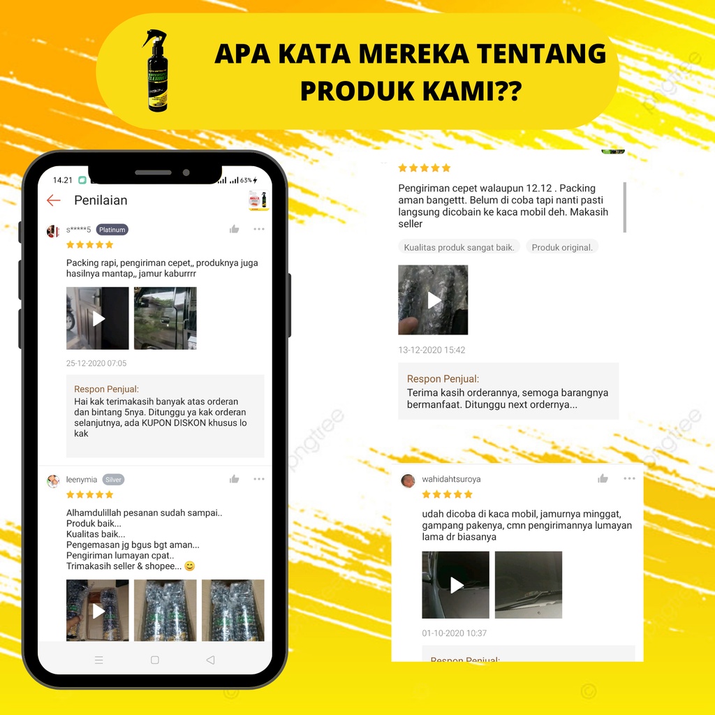 - Produk ini tidak sedang Flash Sale, tidak semua Seller suka Flash Sale, saya rasa ini bukan kekurangan, Jika Anda anggap Harga Rp. 15.000,00 itu murah untuk Pembersih Jamur Kaca Mobil Cairan Pembersih Kerak Body Kendaraan Waterspot Remover ya ambil saja