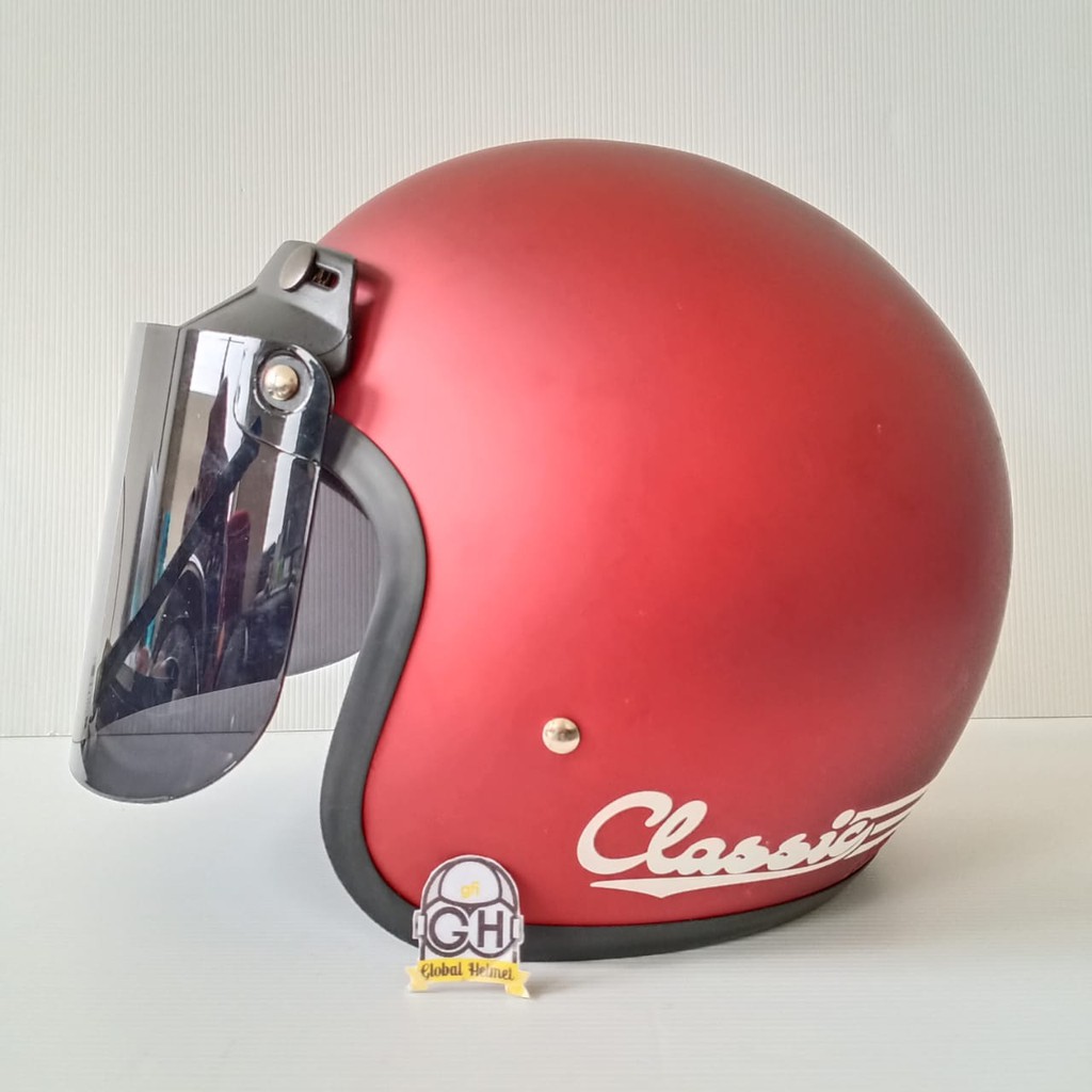 HELM BOGO CLASSIC DEWASA MERAH DOFF KACA DATAR SMOKE [BEST SELLER]