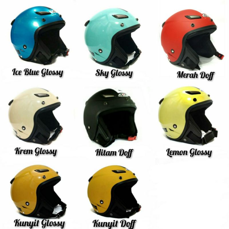 Helm Bogo Dewasa Retro Wanita Cowok Cewek sni Kaca DATAR INJAK Murah Hitam Doff