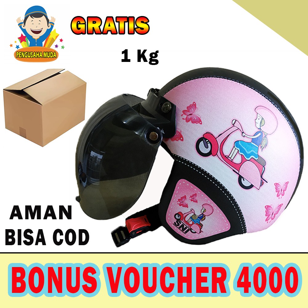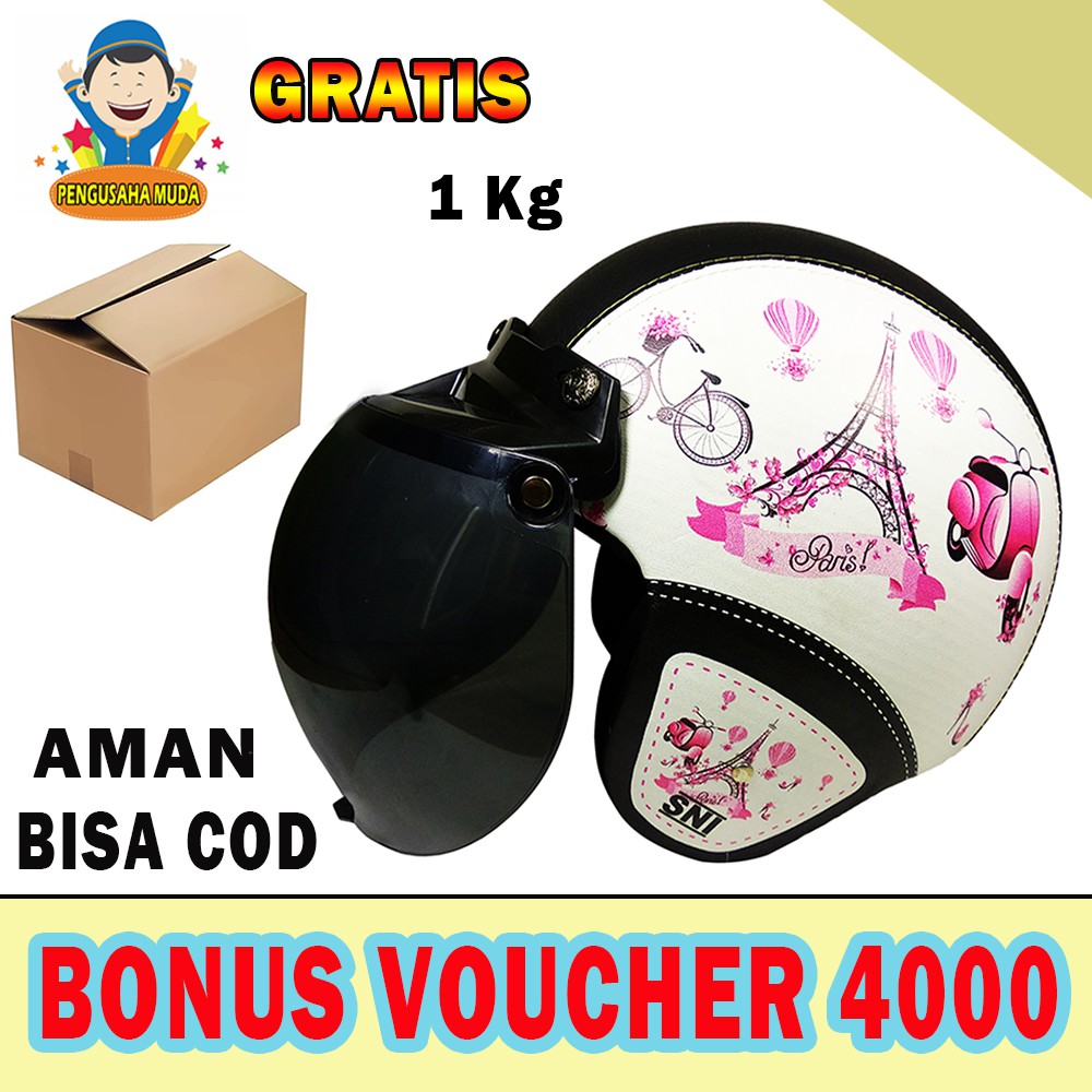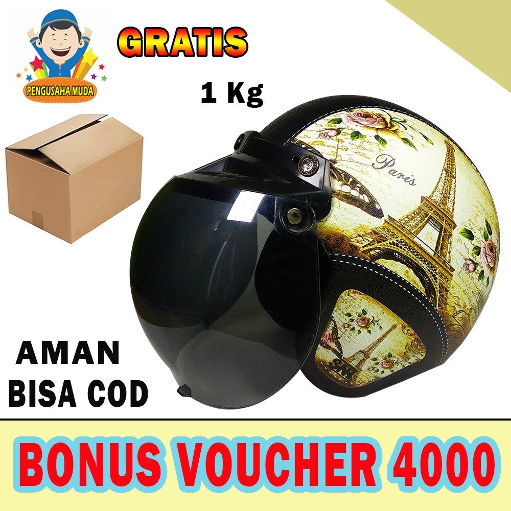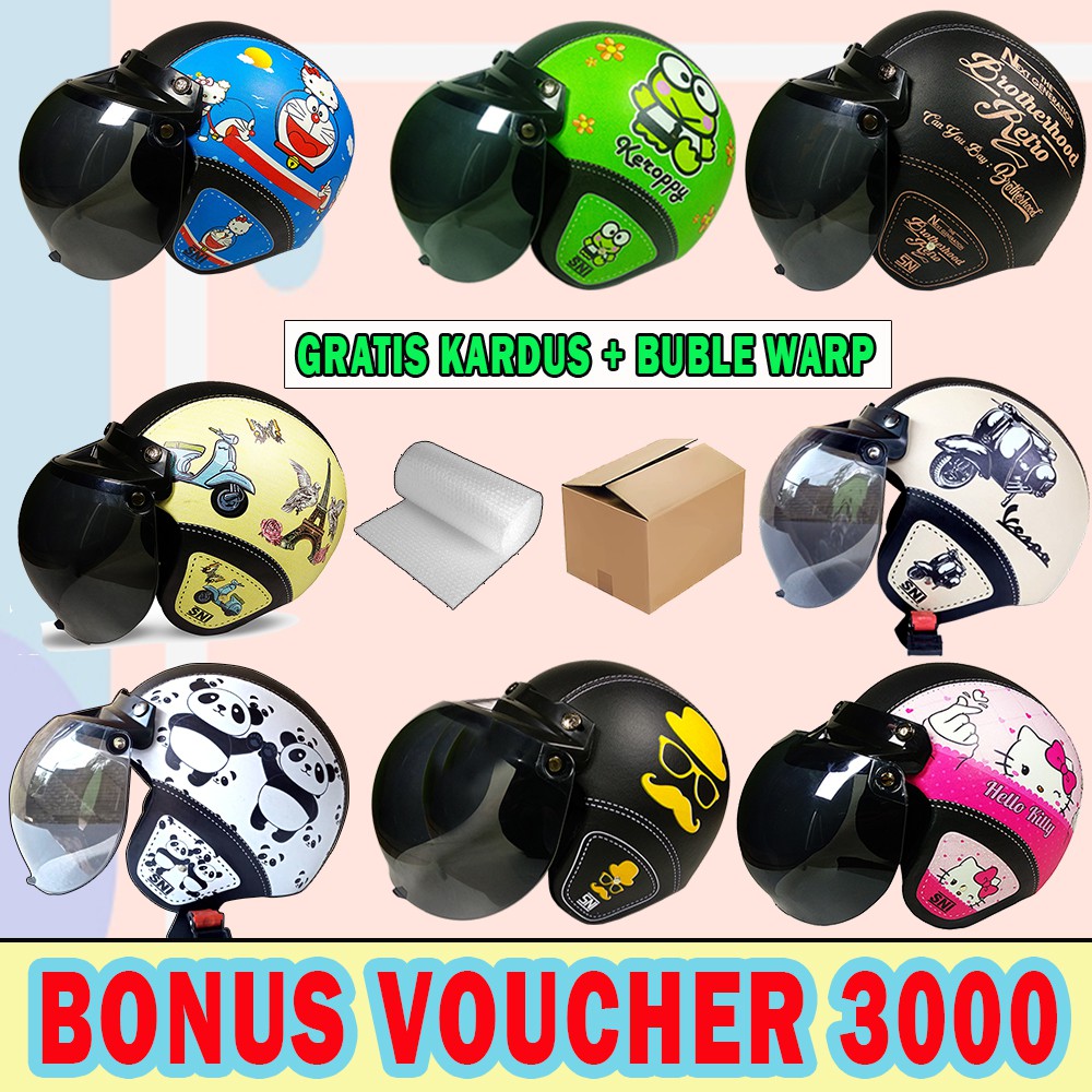 HELM BOGO DEWASA + KACA BOGO SUDAH DIPASANG GRATIS KARDUS DAN BUBLE WRAP