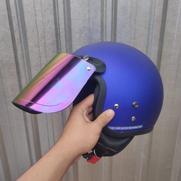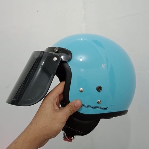 Helm Bogo Jpn ice blue dop kaca datar flat visor cembung