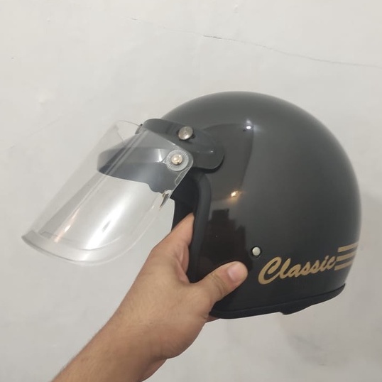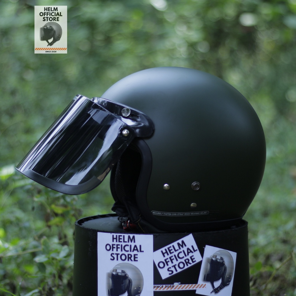 HELM BOGO DEWASA CLASIC SUDAH + KACA DATAR INJAK
