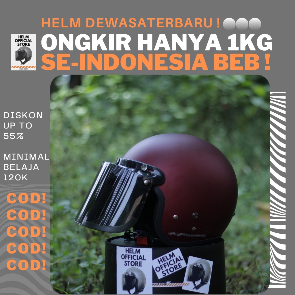 (BAYAR DI TEMPAT)HELM BOGO DEWASA KACA DATAR DAN CEMBUNG