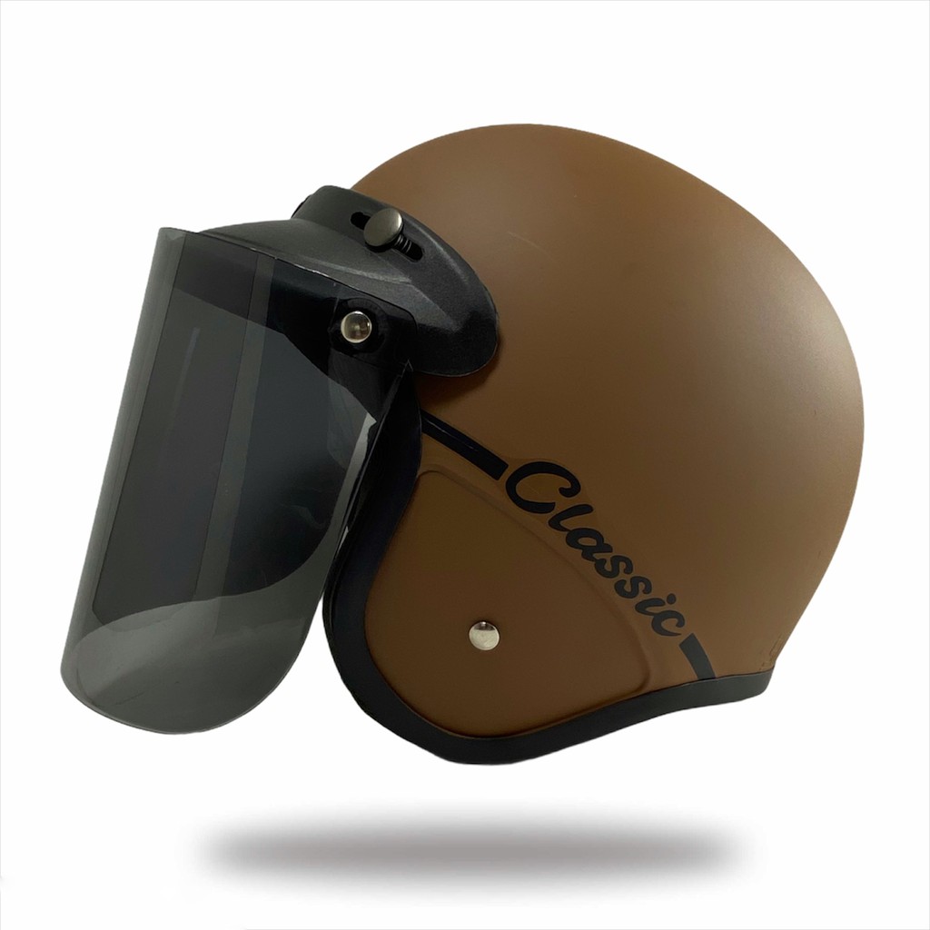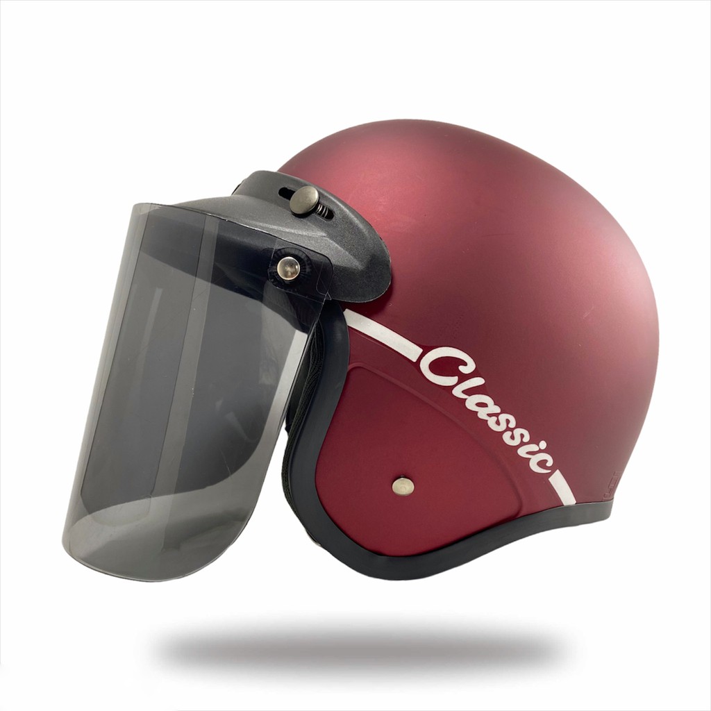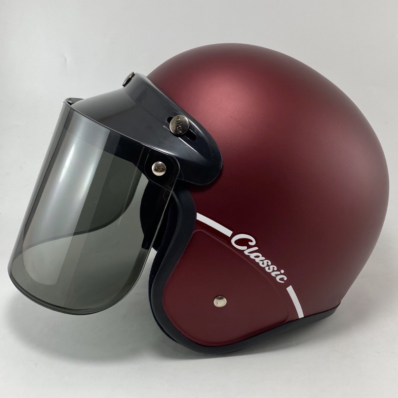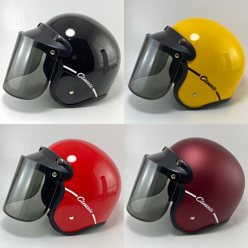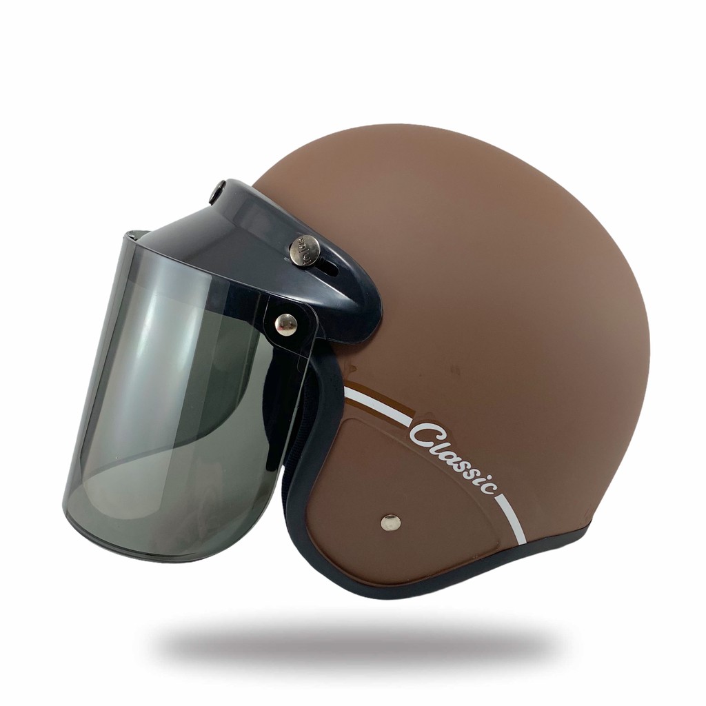 Helm Bogo Dewasa Classic Polos Garis Kaca Datar dan Cembung