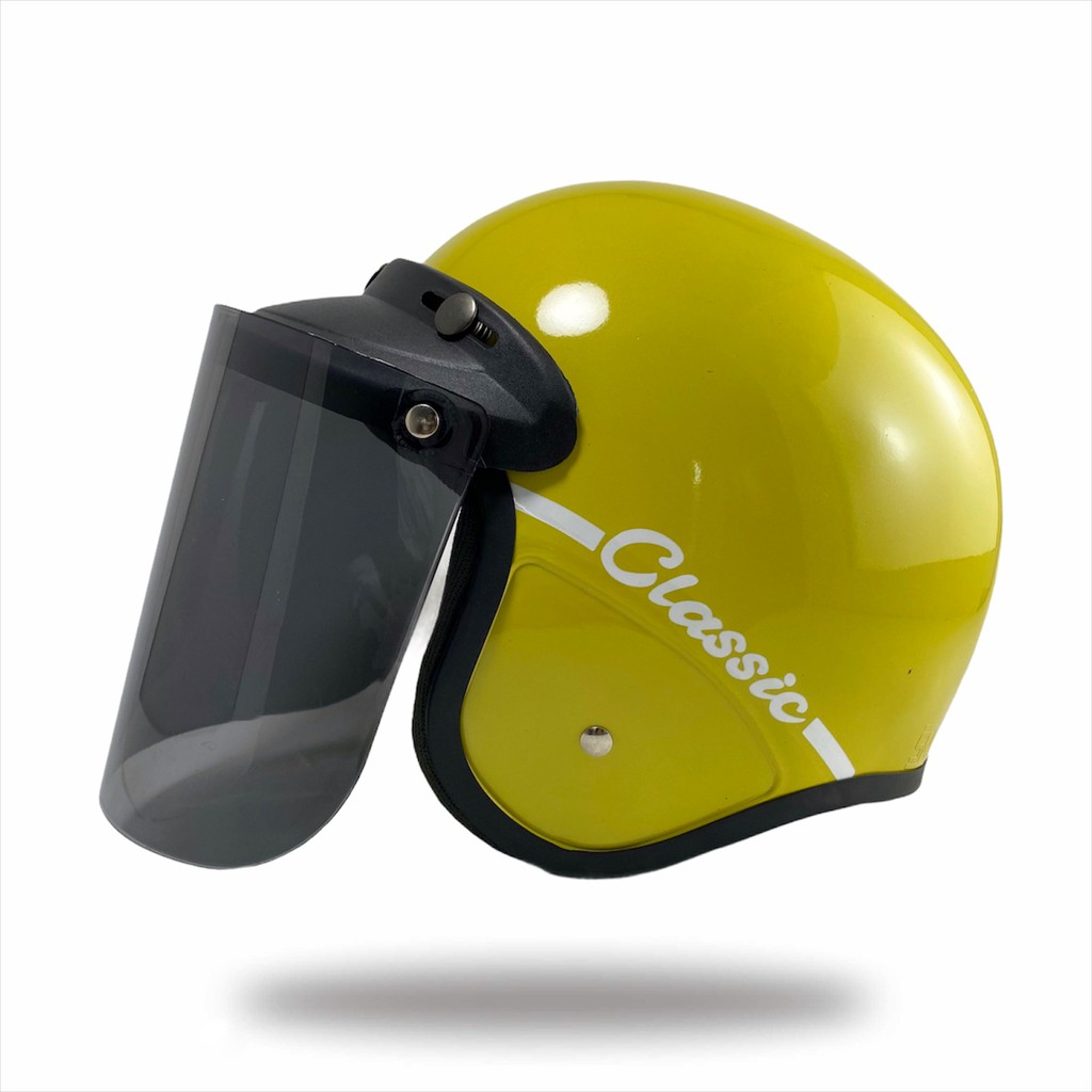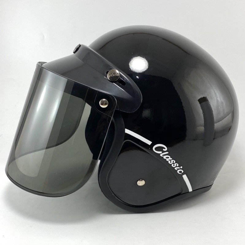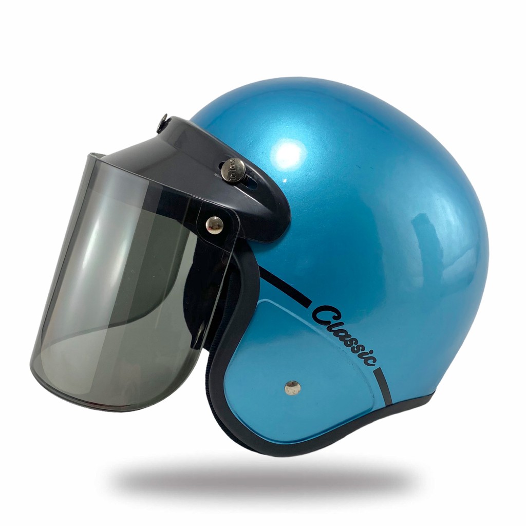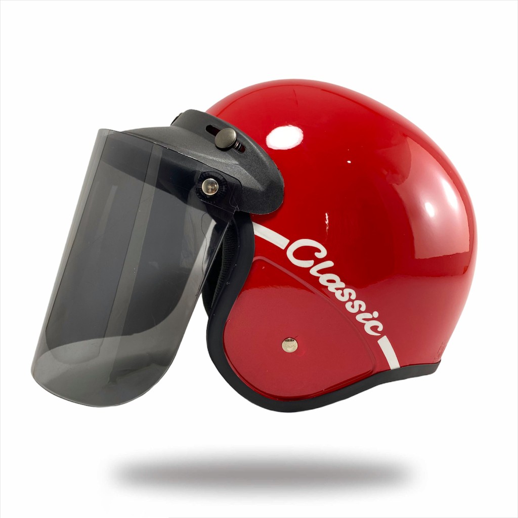 Helm Bogo Dewasa Classic Polos Garis Kaca Datar dan Cembung