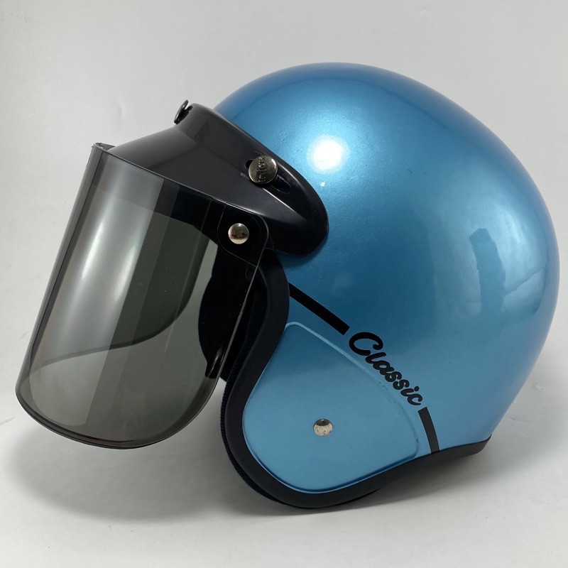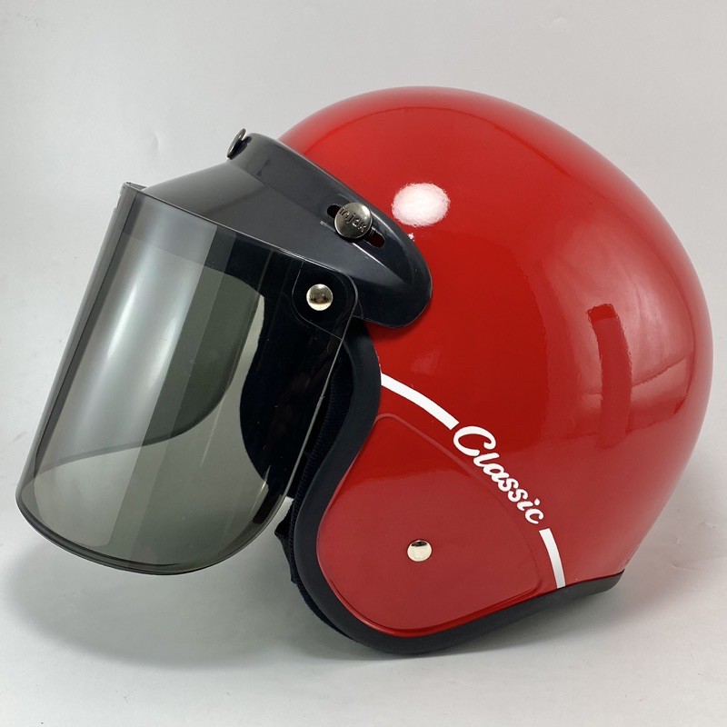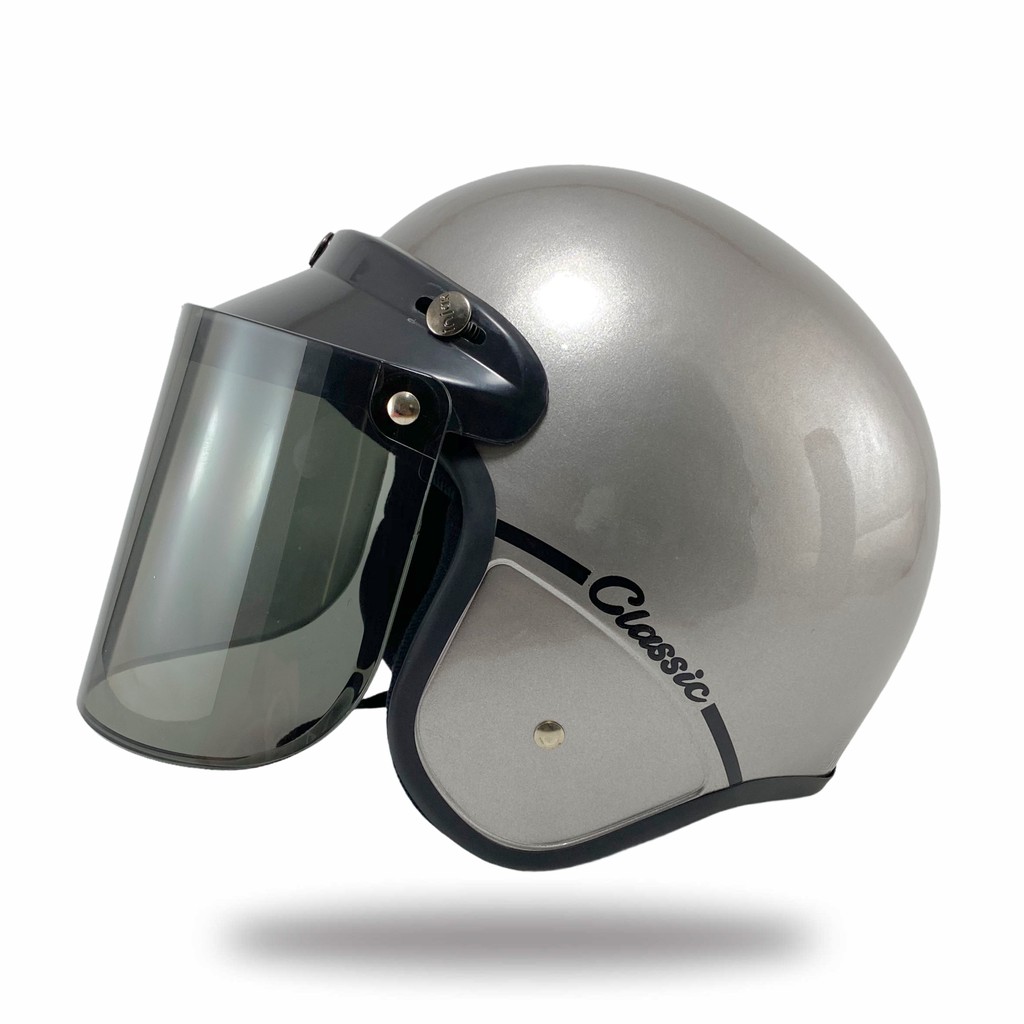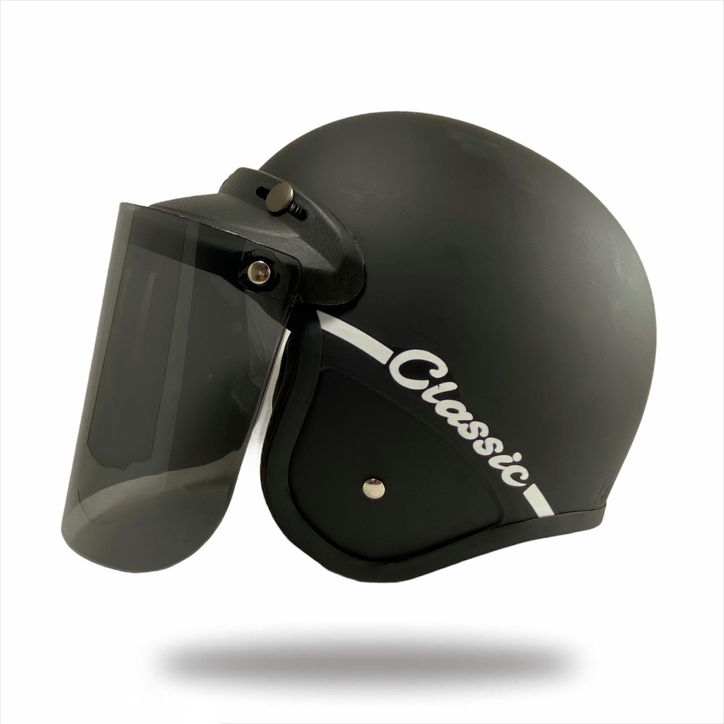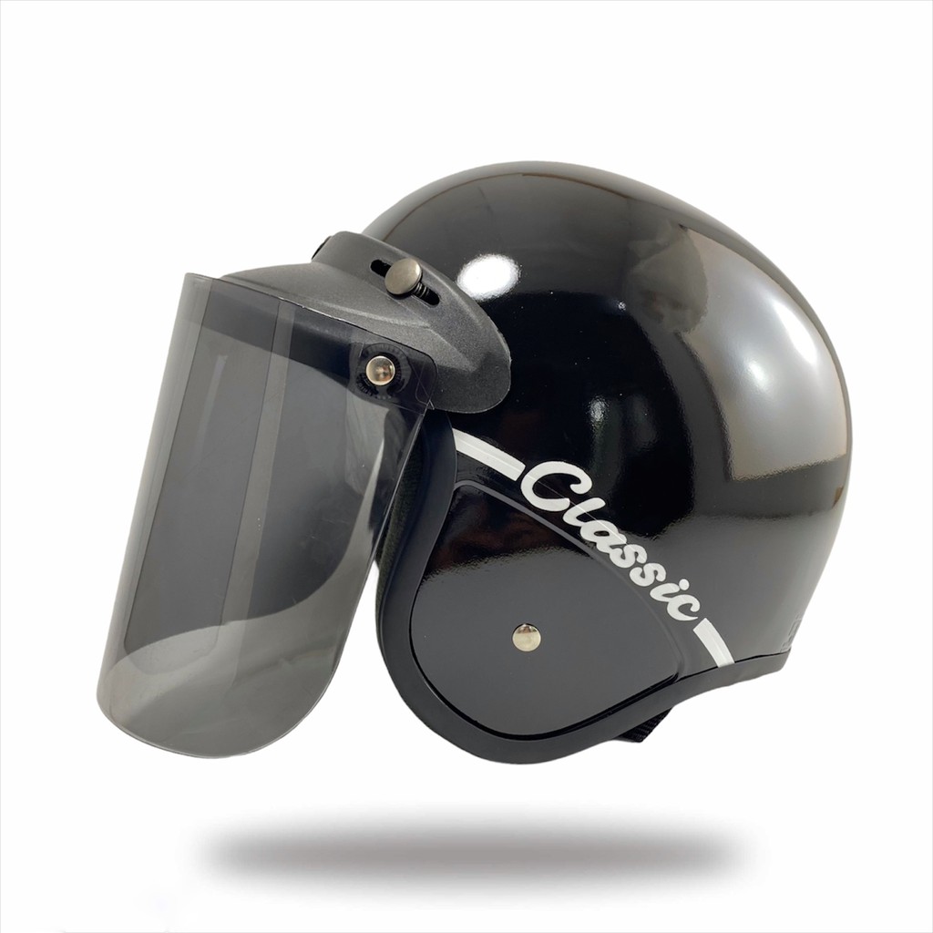 Helm Bogo Dewasa Classic Polos Garis Kaca Datar dan Cembung