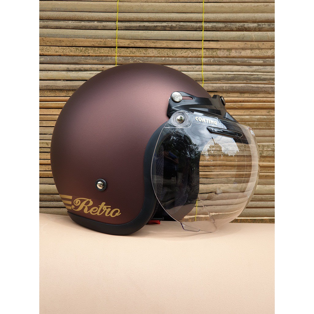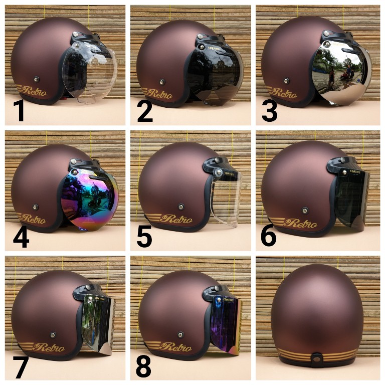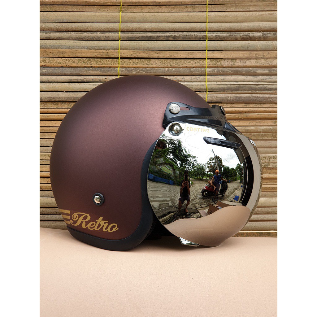 Kekurangan - Kekurangan membeli Helm Bogo Dewasa Retro Coklat Dof Kaca Flat Datar dan Cembung Bening Clear Hitam Smoke Silver Pelang di Toko ini