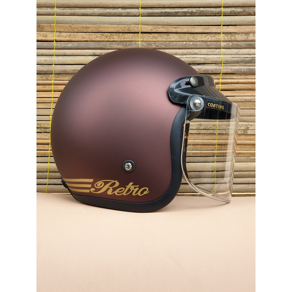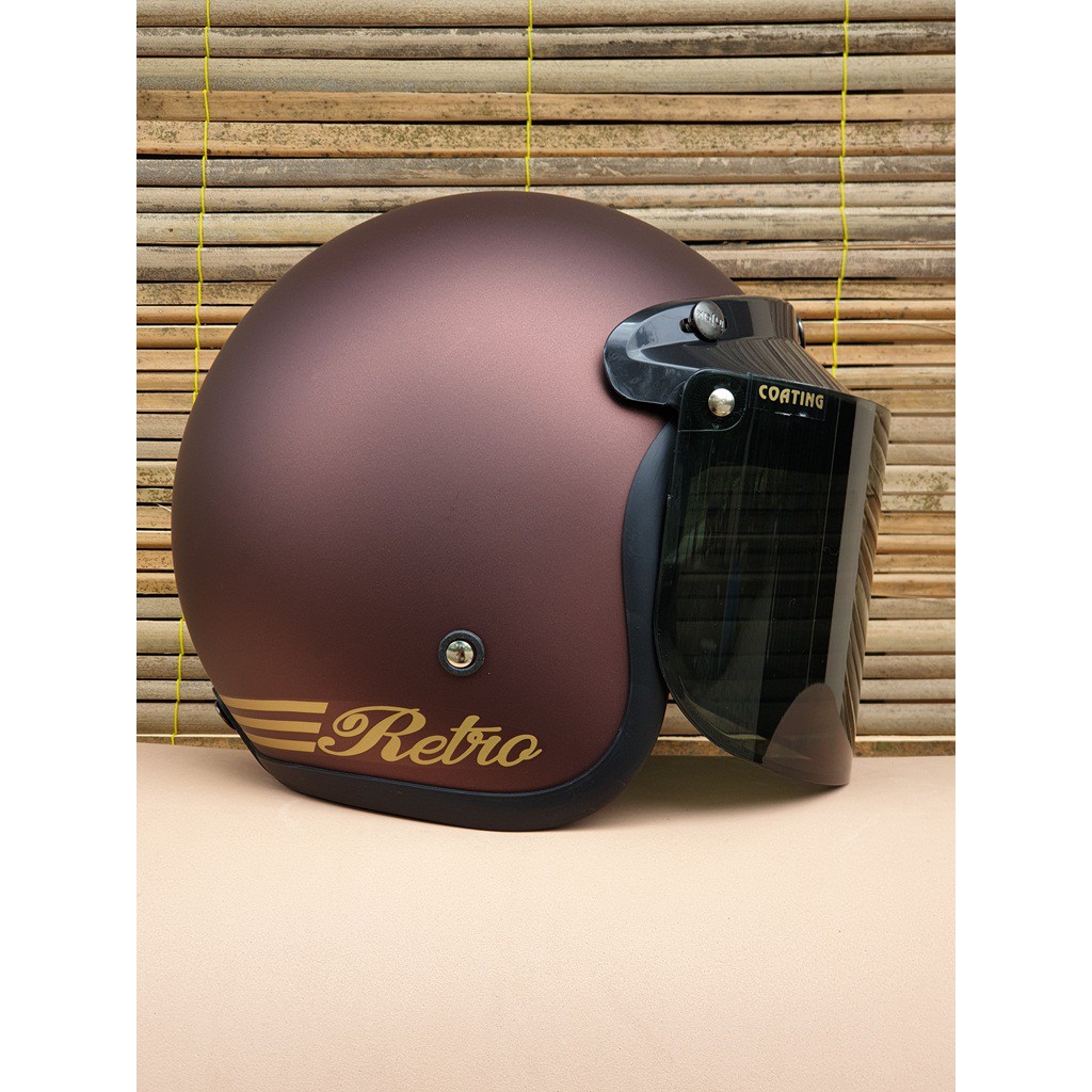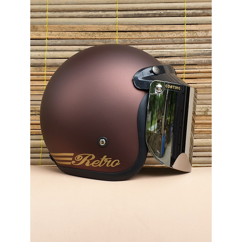 Helm Bogo Dewasa Retro Coklat Dof Kaca Flat Datar dan Cembung Bening Clear Hitam Smoke Silver Pelang