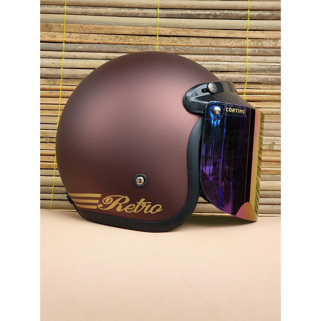 Helm Bogo JPN arc retro Violet Dof kaca datar flat visor
