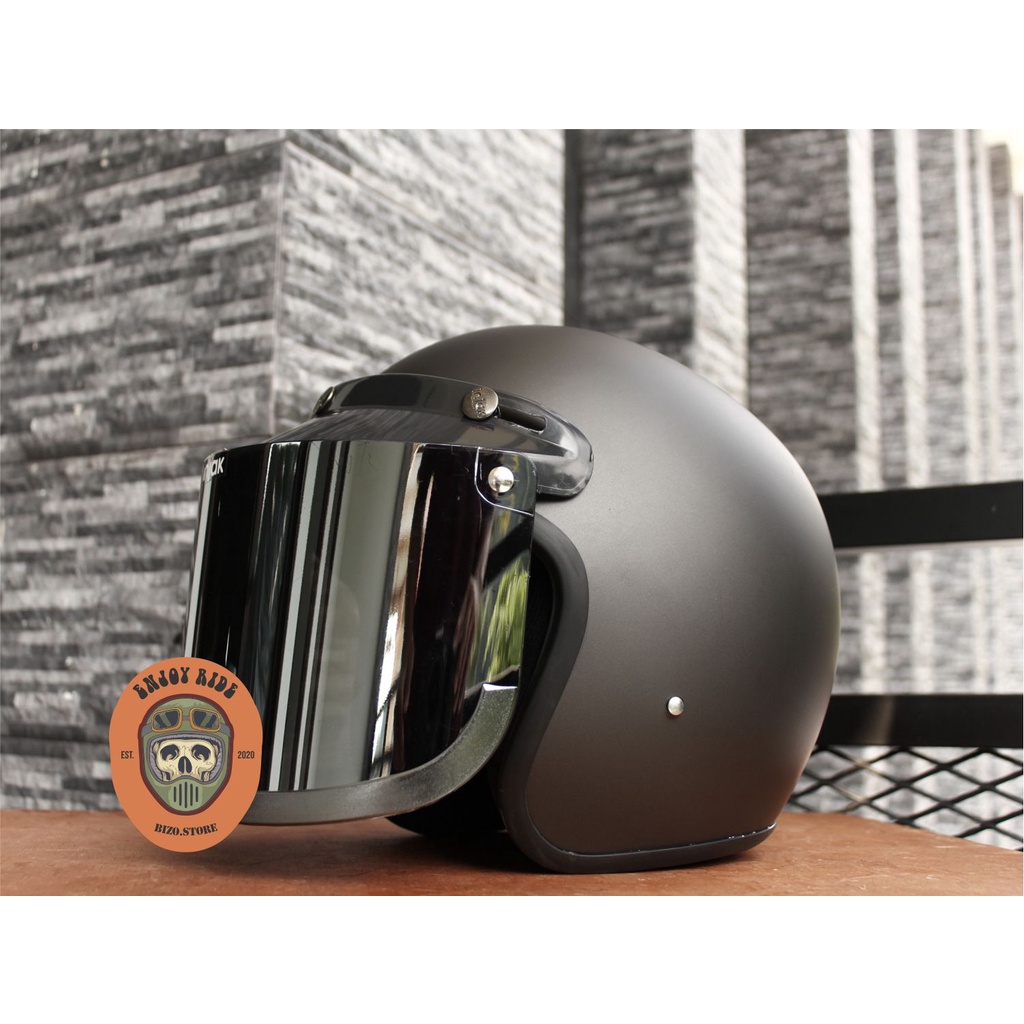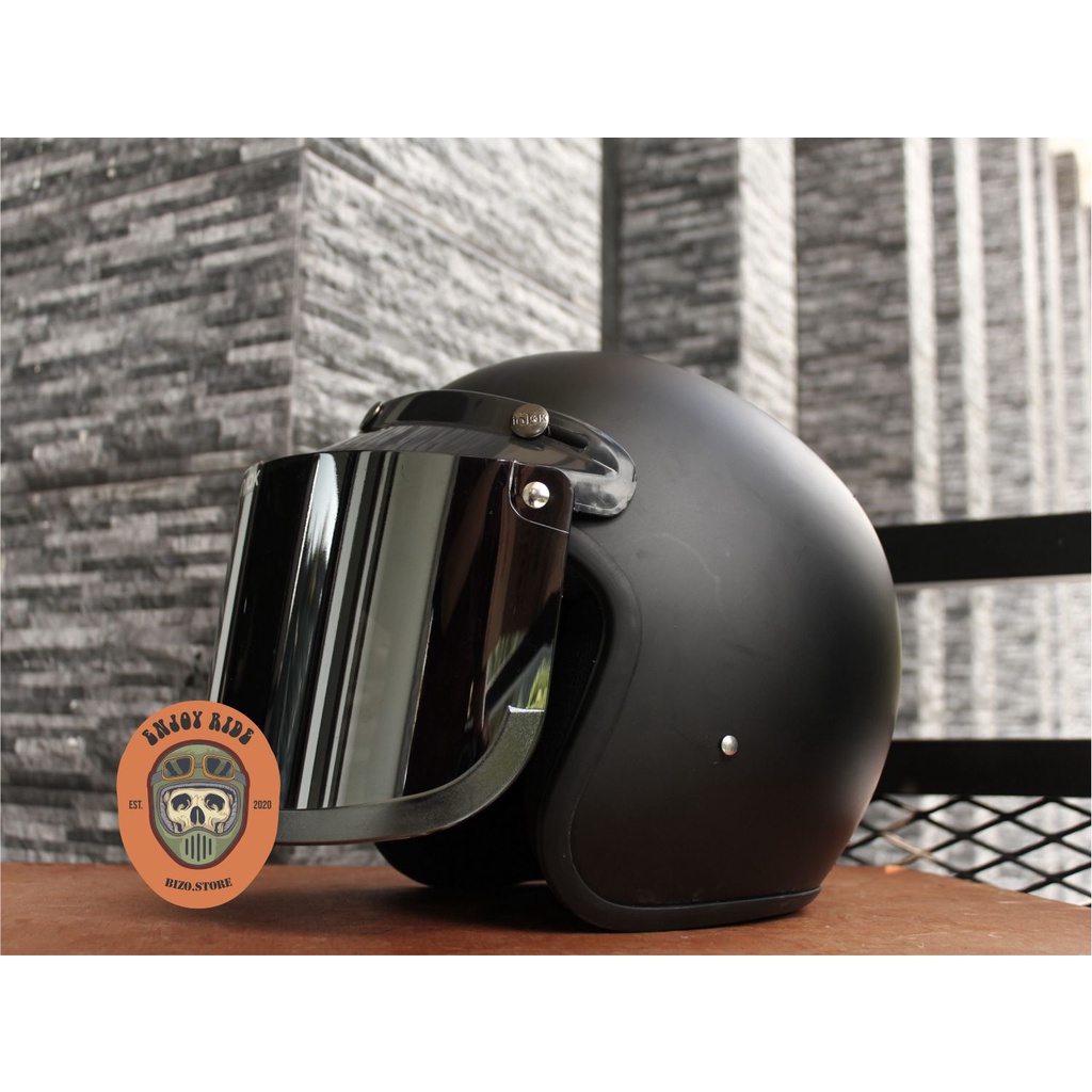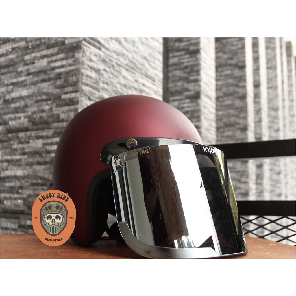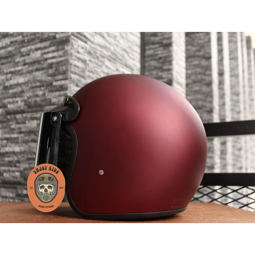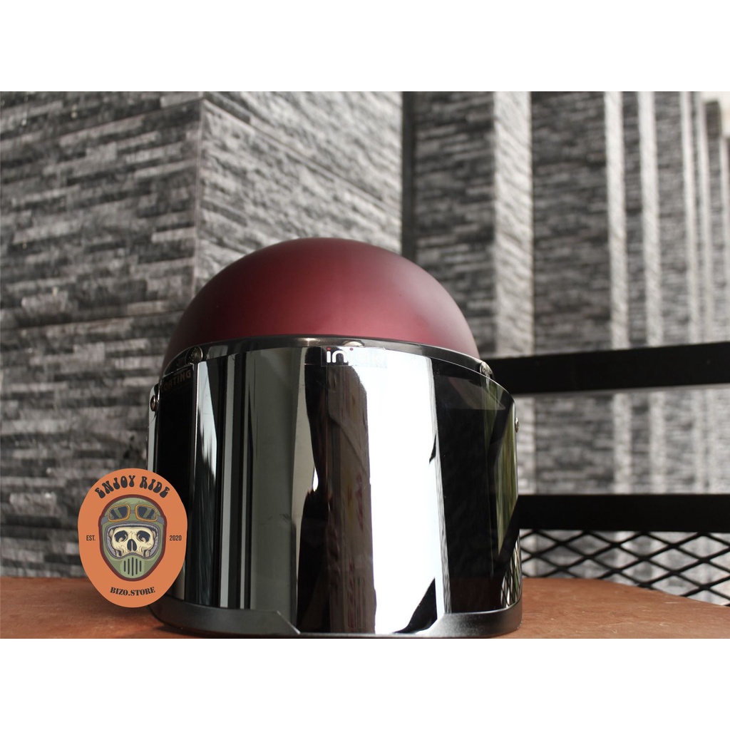Helm Bogo Retro Dewasa SNI List Classic Polos Kaca Cembung Full Leher