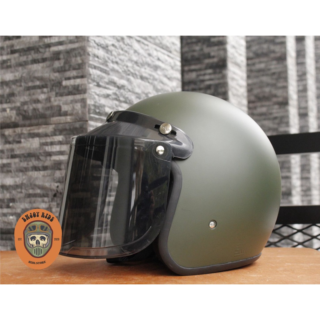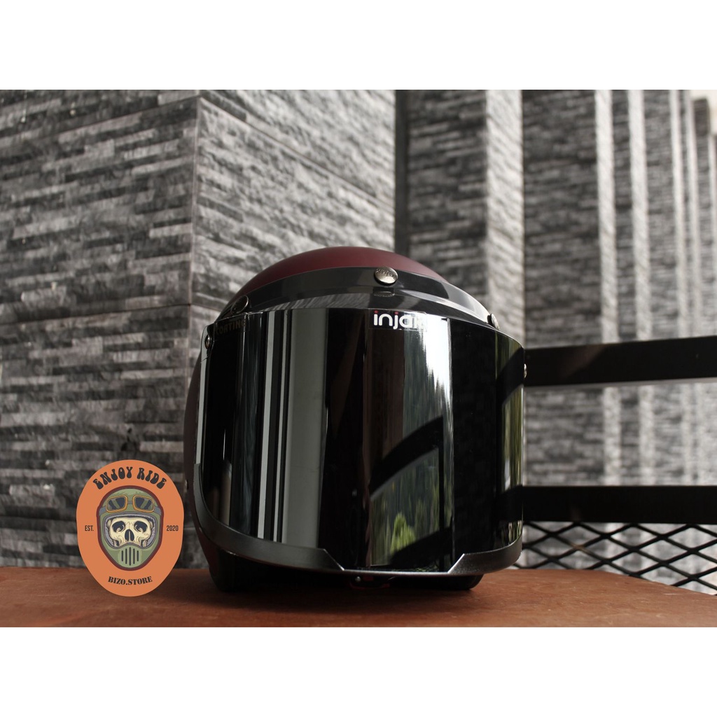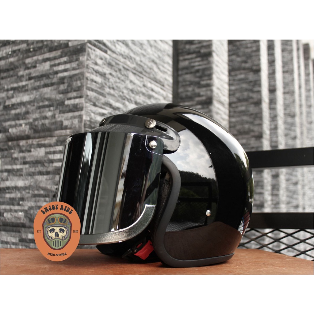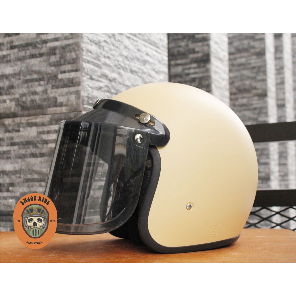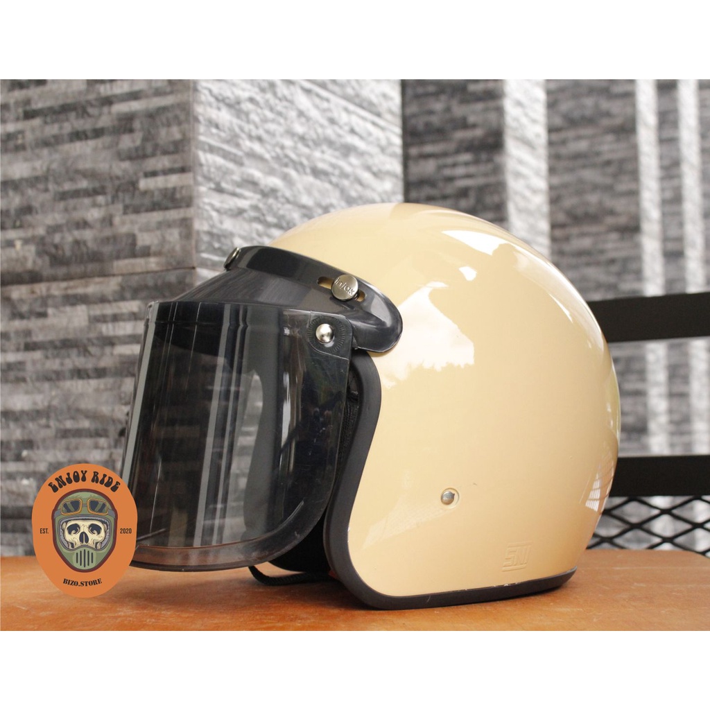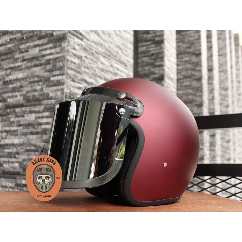 Helm Bogo Retro Dewasa SNI List Classic Polos Kaca Cembung Full Leher
