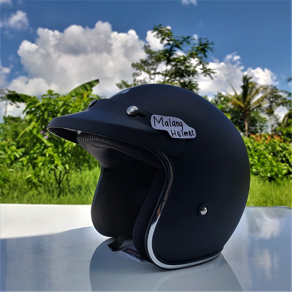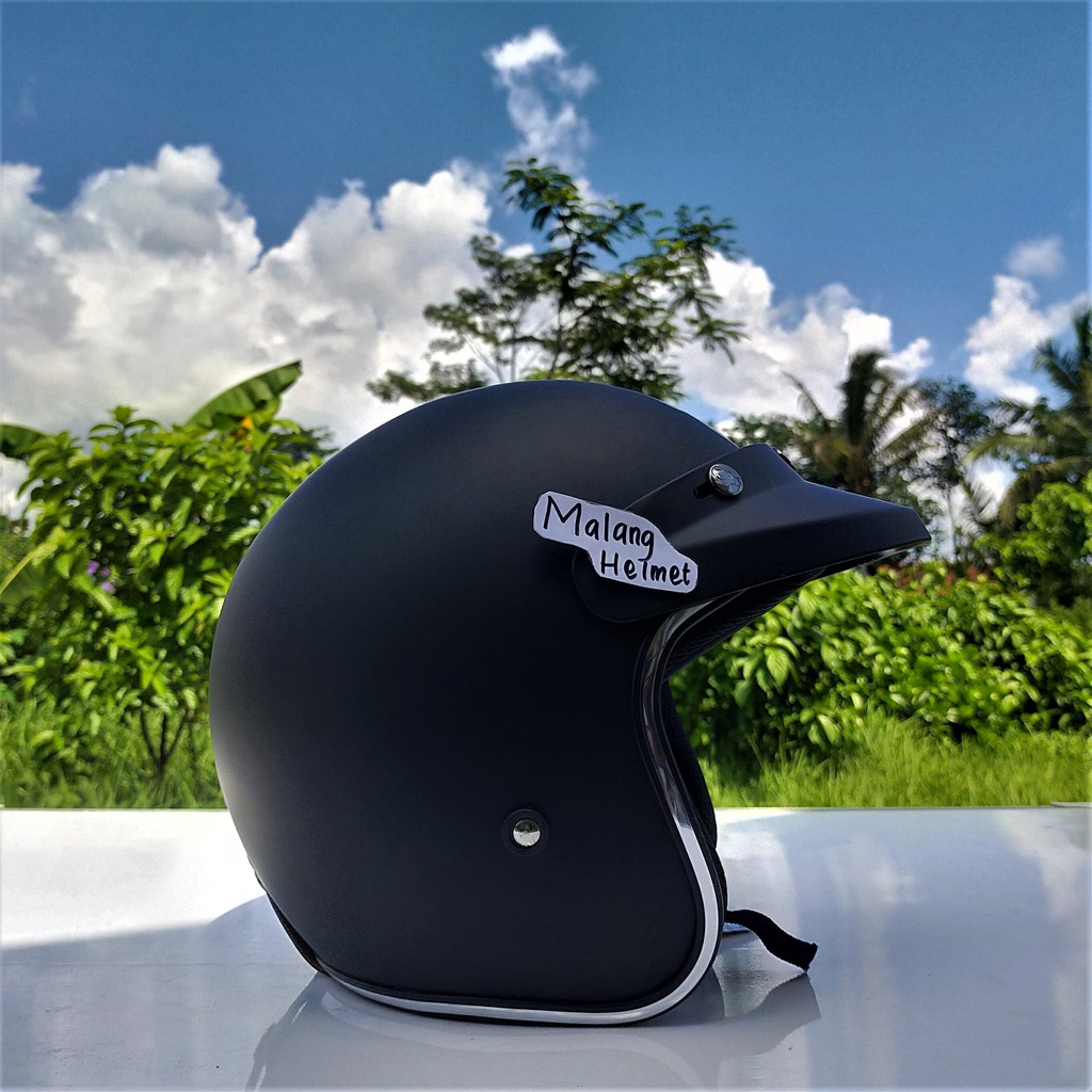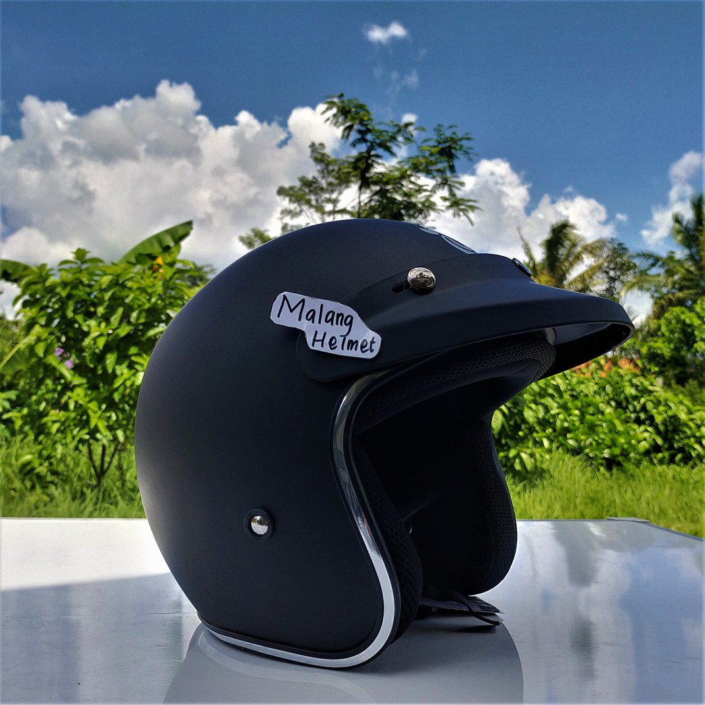 Helm Bogo JPN Black Doff Original Retro + Kaca Datar